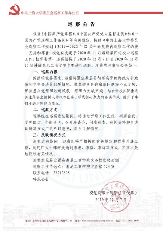 校党委第一巡察组巡察公告