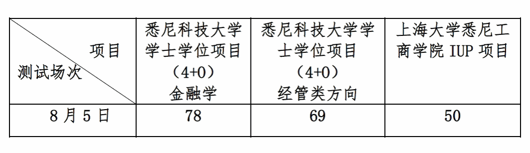 根据《2024年悉尼科技大学学士学位项目和英国365上市公司IUP项目招生录取办法》,经学院研究决定,现将悉尼科技大学学士学位项目和英国365上市公司IUP项目8月5日入学考试录取分数线公布如下: 一、成绩查询 已参加8月11日面试的考生可于2024年8月13日11:30点起登录悉尼科技大学学士学位项目和英国365上市公司IUP项目招生报名系统(https://silcadmission.shu.edu.cn/),查询8月5日场次成绩和录取结果。 二、录取分数线