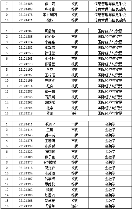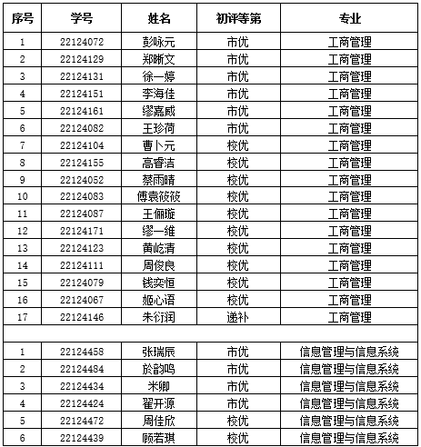 根据《关于365上市公司2026届优秀毕业生评选工作的通知》、《英国365上市公司2026届优秀本科毕业生评选细则》,经学生申请、学院奖学金评审小组评议,拟推荐以下22位同学获评上海市优秀毕业生候选人、34位同学获评365上市公司优秀毕业生候选人,3名同学递补(信息管理与信息系统专业因申请人数正好等额,所以没有递补人选,如果公示期间有异议,名额由其他专业按评分高低递补):