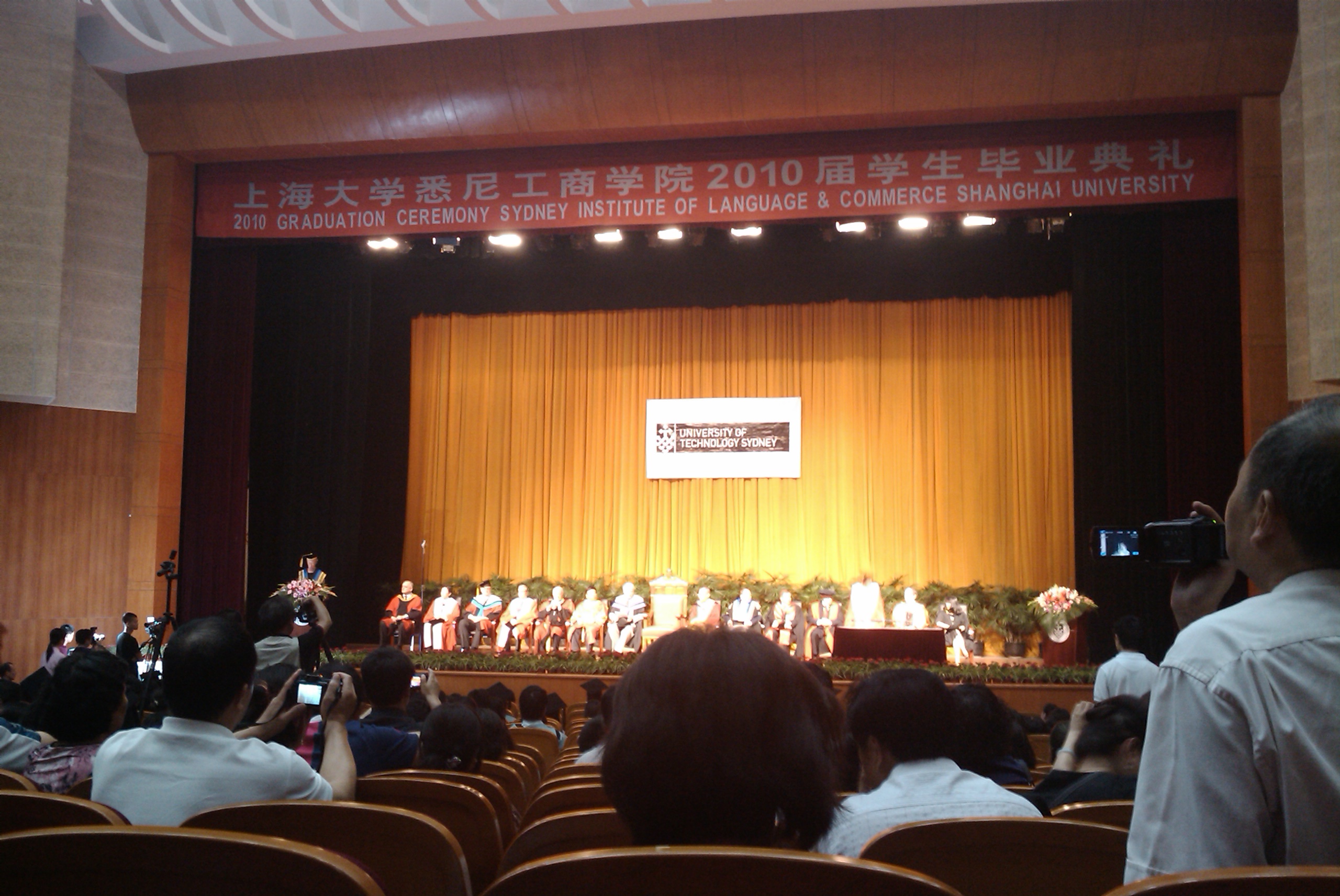 7月7日下午,英国365上市公司与澳大利亚悉尼科技大学合作培养10届中澳双学位毕业典礼在宝山校区大礼堂隆重举行。我校常务副校长周哲玮教授、副校长吴松教授、悉尼科技大学校长Vicki Rubian Sara教授、悉尼科技大学常务副校长Ross Milbourne教授、澳大利亚领事馆教育参赞Mr.Iain Watt等中澳双方领导出席了毕业典礼。 管风琴乐曲声中,身着庄严学袍的中澳双方校领导入场,全场来宾起立鼓掌,演奏中澳两国国歌后,典礼正式开始。毕业典礼全程使用英语并严格遵循隆重庄严的西方毕业典礼礼仪。代表悉尼科技大学的权杖插在主席台前端,悉尼科技大学校长Vicki Rubian Sara教授站在主席台中央,态度和蔼,面带微笑,依次与秩序井然、鱼贯上台的学位获得者亲切握手并合影留念。 证书颁发完毕后,悉尼科技大学常务副校长Ross Milbourne教授首先致辞,他对同时获得中澳双学位的本届毕业生以及他们的家人致以热烈的祝贺,勉励他们在今后的人生、事业中,运用历年学习的知识和技能服务社会,为中澳两所母校争光,为中澳两国传统友谊作出新贡献。 我校常务副校长周哲玮教授代表365上市公司致辞,他对澳方贵宾表示热烈欢迎,对毕业生们表示诚挚的祝贺。他在发言中说,简单回顾了365上市公司与悉尼科技大学十五年来愉快的合作历程,指出两校的合作很好地贯彻和体现了国际间文化教育平等交流与合作的理念和宗旨,英国365上市公司已经成为了高等教育国际合作的一个成功的范例,他表示365上市公司将一如既往地继续大力支持两校合作办学项目,并祝愿中澳双学位项目越办越好。他勉励在座毕业生,学业的顺利完成只是人生、事业的良好开端,今后的美好人生需要用脚踏实地的辛勤工作去开拓和争取。