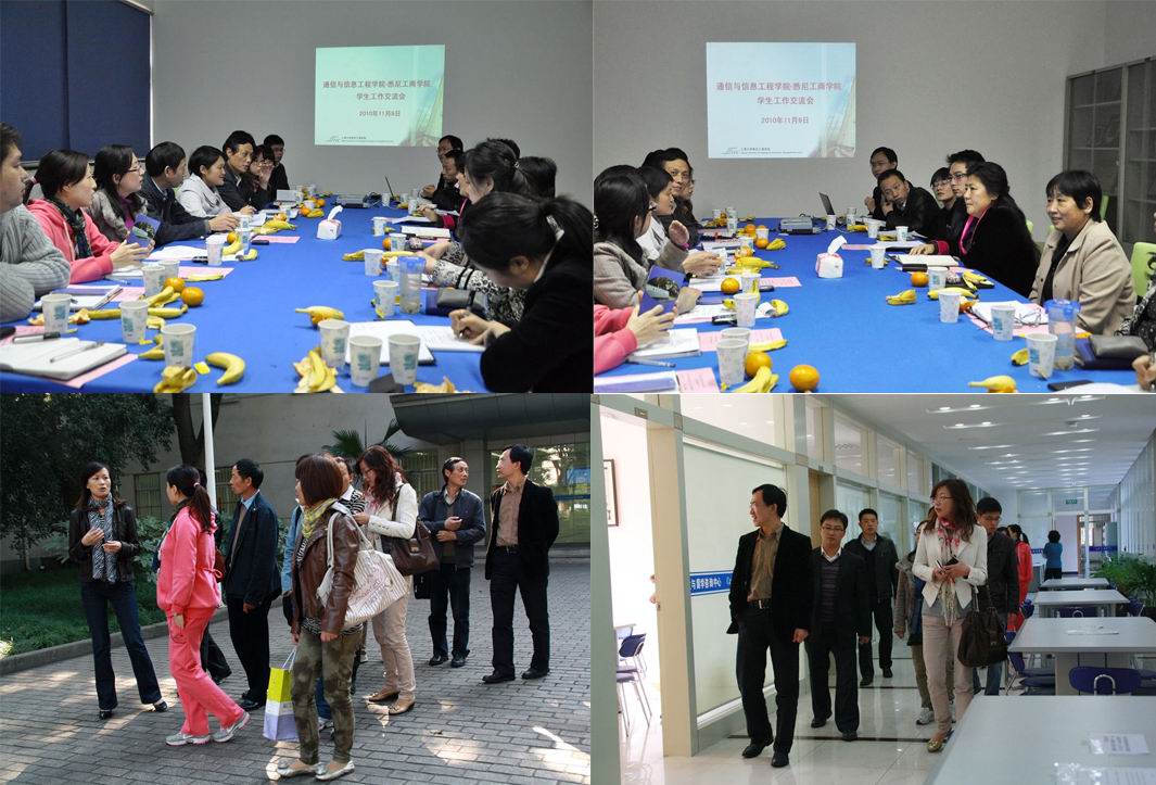 11月9日中午,通信与信息工程学院党委副书记吴蔚带领学生工作部老师一行13人到访英国365上市公司。我院党委书记陆翠兰、副书记滕云以及学院学工部全体辅导员热情接待了通信学院的领导、老师,并举行了工作交流会。