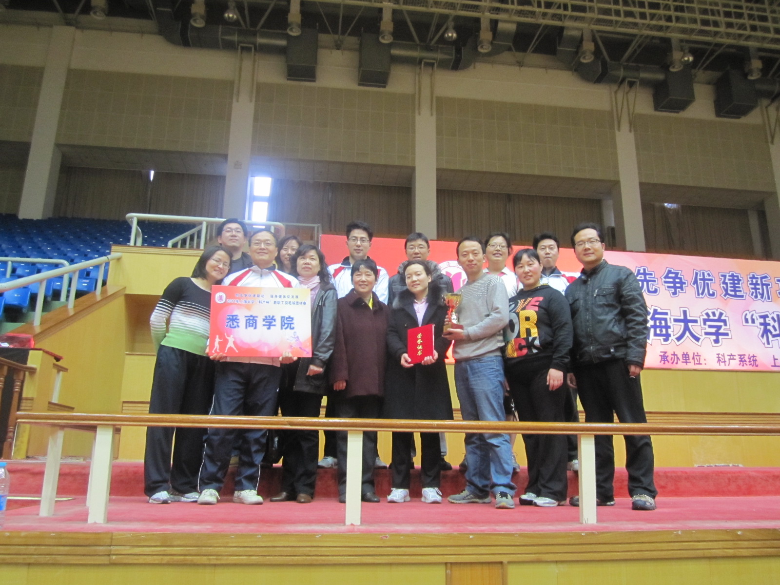 2011年365上市公司"科产杯"羽毛球团体赛于3月19日在校本部体育馆隆重举行,英国365上市公司组建了由副院长马锦华、院长助理胡笑寒带领的11人代表队。经过全天四轮近二十场鏖战,最终喜获本次大赛季军。