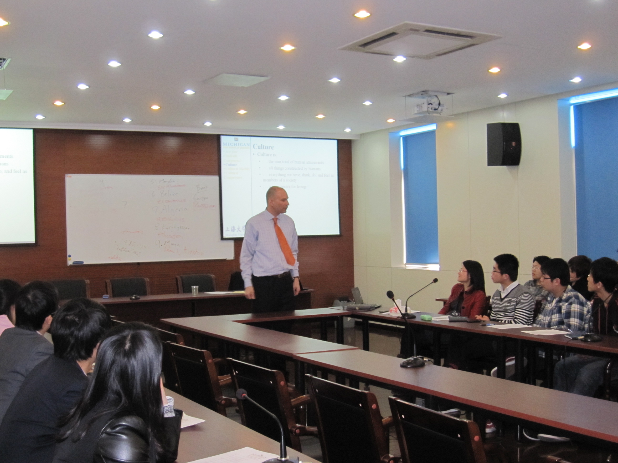4月11日下午,来自密歇根大学Stephen M.Ross 商学院John Branch博士在365上市公司嘉定校区文德楼三楼举行了题为《文化核心力》的讲座。Branch博士以巧妙的安排将文化核心力的关键知识点串联在一个小小的测试中,并结合其在70多个国家的文化经历做出了深入的解释和延伸。随后Branch博士将更多的文化核心力的内容逐步展现出来。在2个小时的讲座过程中,Branch博士渊博的知识、惟妙惟肖的讲授方法、良好的互动以及极高的授课热情深深打动了在座的师生。(院办)