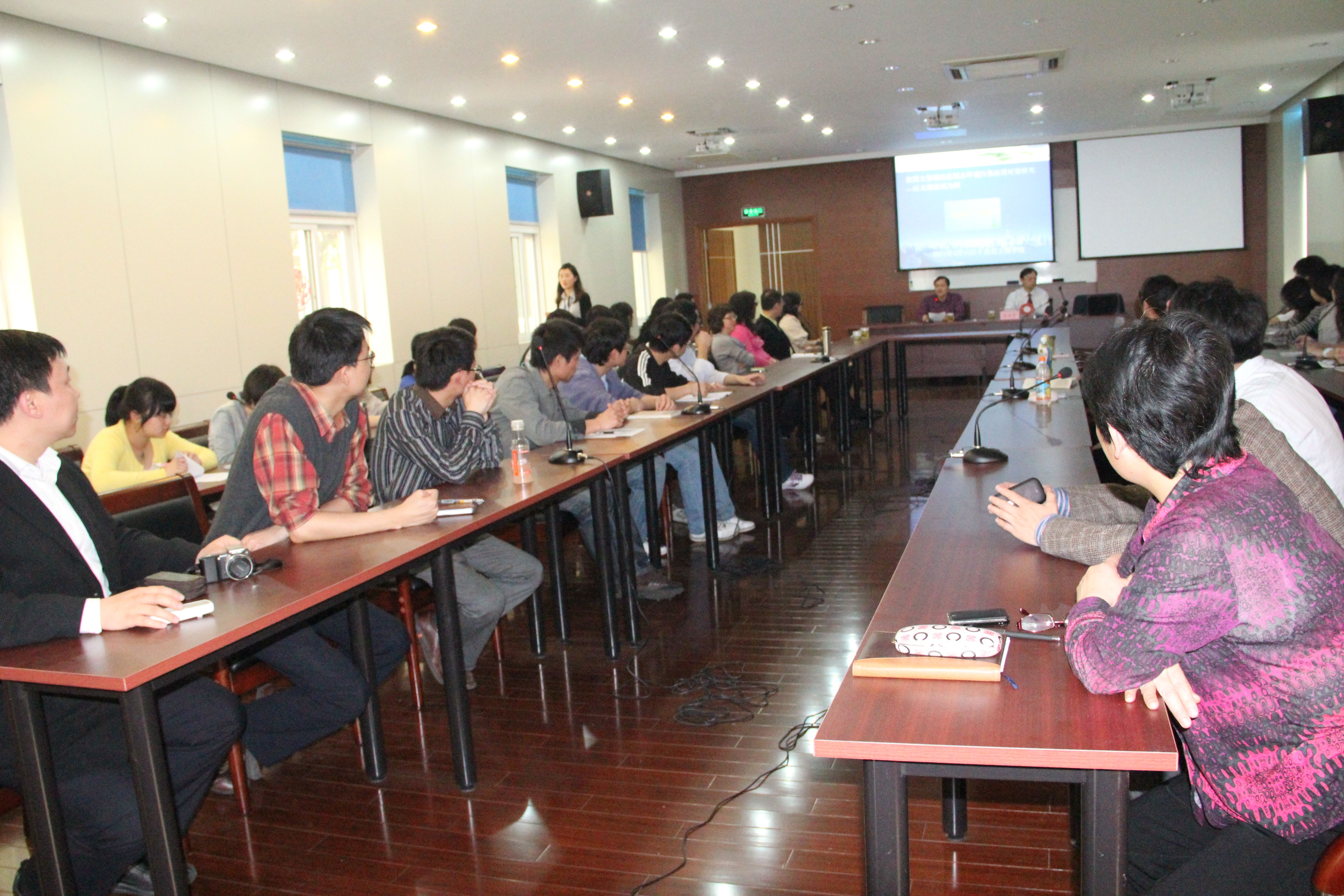 报告会开始前,我院马锦华副院长对赵教授一行表示了热烈的欢迎,并对赵教授的杰出成就进行了简单介绍。此次报告会以我国大型湖泊流域水环境污染治理对策研究——一太湖流域为例为主题,主要分为四个方面:太湖流域基本情况、理论研究成果、政策建议以及相关研究成果。赵教授以鲜活生动的事实和广博渊深的知识,使大家对我国大型流域跨界水污染问题日益突出有了一个清醒的认识,同时也对如何更好地进行大型流域水污染防治有了一定的了解。报告会圆满结束后在座师生纷纷表示收益匪浅。(科研与研究生部)