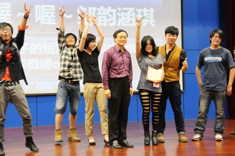此次大赛不仅汇集了众多英国365上市公司的英语歌曲爱好者,更吸引了来自宝山校区美术学院、外语学院学生的积极参与。经初步海选,14名选手最终脱颖而出,站在今晚的舞台上进行最后的角逐。第一轮showtime环节,要求入围者通过视频进行自我介绍并展示参赛歌曲。精心的准备,精彩的表演,选手们的出色表现令在场观众大饱耳福。5号选手徐玉垒同学别出心裁地设计了亲友团献花环节,引来满场喝彩,而最后出场的半调子乐队更以其超凡的唱功和富有冲击力的现场演奏将全场气氛推至高潮。