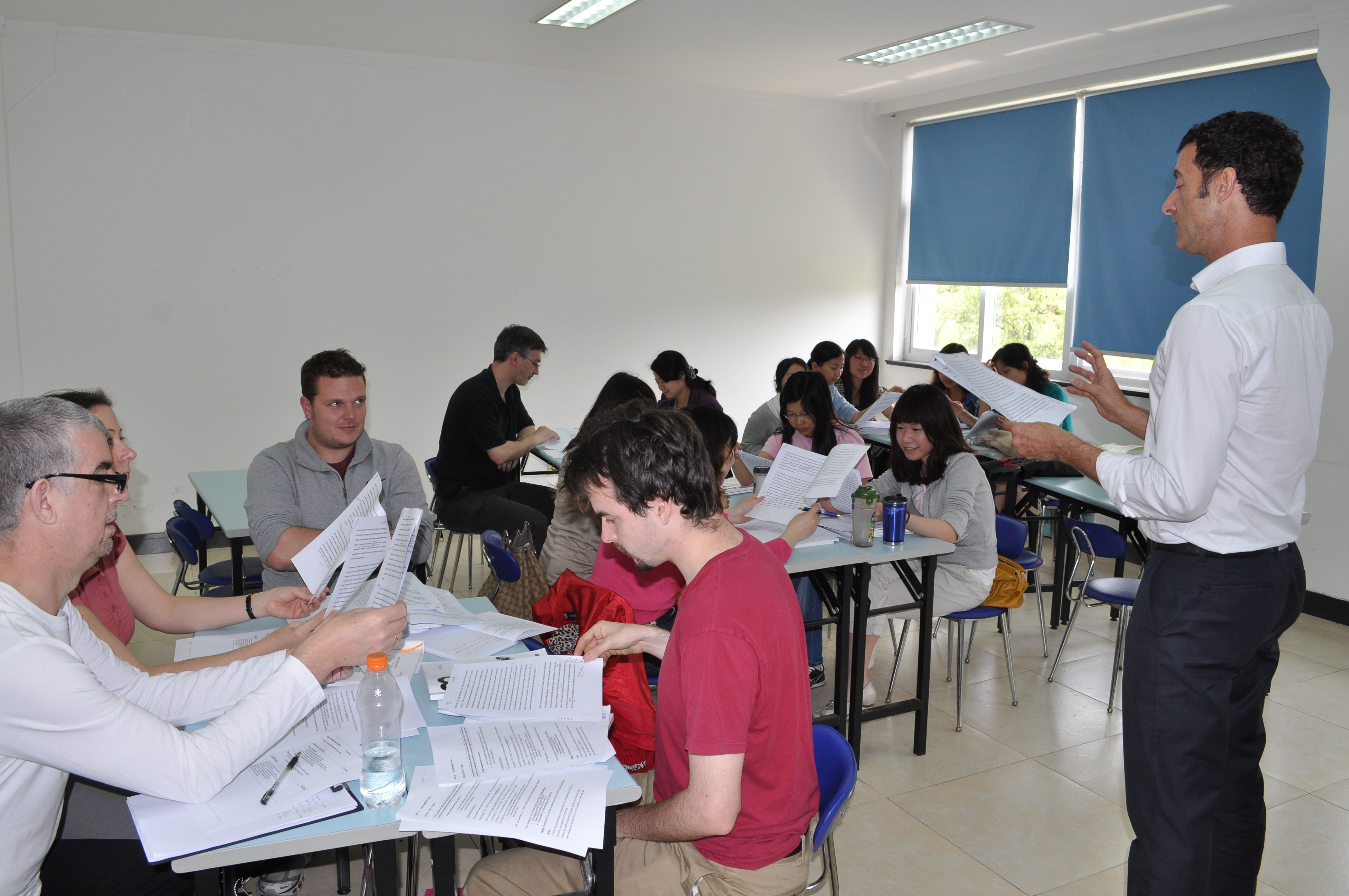 为使英语教师尽快熟悉学术英语教学的规律和方法,通过观摹和讨论,给教师们提供学习和交流的机会,4月25日至29日,部分中外籍教师接受了为期一周的AEP8, 9高强度、高质量的学术英语教学培训。此次培训由Insearch 海外项目课程开发主任Brad Hugh和我院英语教学副院长Matthew Williams共同组织。