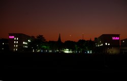 立冬之日,当新月与夕阳的余辉交汇之时,在文博楼及文荟楼粉色缊光的映衬下,充满了中西文化气氛的悉商一片祥和。