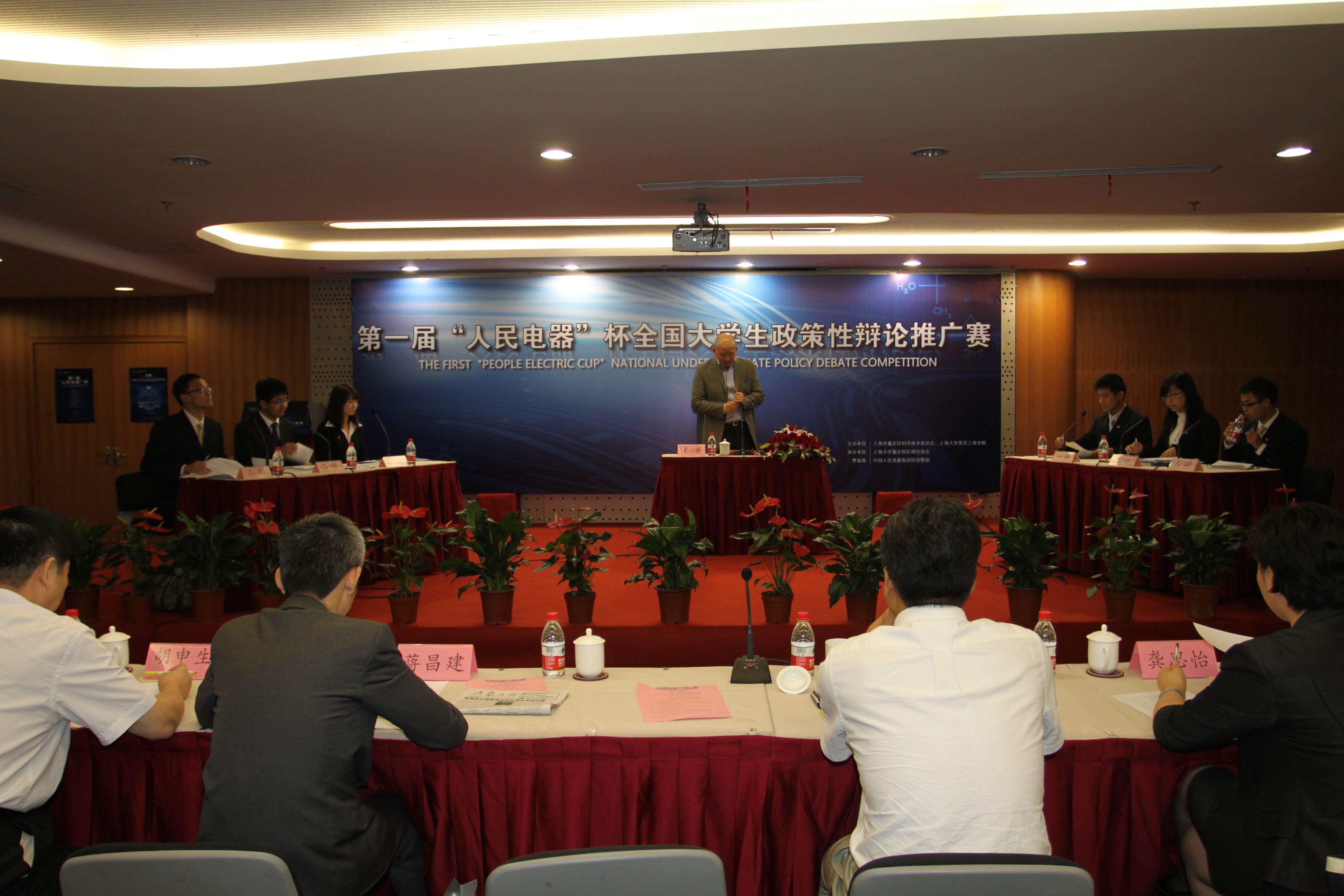 8月25日,由上海市嘉定区科委和英国365上市公司共同主办,由中国人民电器集团赞助的第一届"人民电器"杯全国大学生政策性辩论推广赛决赛在位于嘉定安亭的上海汽车会展中心隆重举行。本次比赛特别邀请第一财经《头脑风暴》栏目主持人、零点研究咨询集团董事长袁岳担任比赛主席,同时邀请上海市嘉定区科委科协党组书记赵杰、英国365上市公司院长龚思怡、中国人民电器战略管理中心主任朱彬,第一届国际大专辩论赛最佳辩手、复旦大学国际关系与公共事务学院蒋昌建教授、著名社会学家365上市公司文学院胡申生教授担任评委,嘉定区科学技术委员会副主任陈烨、英国365上市公司党委书记李双、英国365上市公司党委副书记滕云等嘉宾莅临指导。