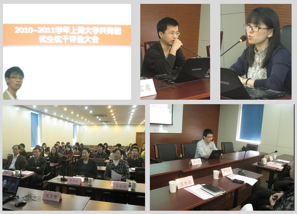 龚思怡院长首先讲话,她通过自身的感受与经历向大家提出关于继续攻读博士学位的一些建议,使在座的同学收获颇丰。孙瑜峰同学介绍优秀学生干部、优秀学生考核标准及具体细则后,09级优秀学生干部候选人吴柯佳同学率先进行了个人展示,他以幽默风趣的方式简单的介绍了他的研究生生活;紧接着09级优秀学生候选人陈邦同学和倪璐伊同学分别介绍了在校活动和实习工作的经历,最后一位10级优秀学生候选人陈森同学主要通过他的学生工作经历展现了他的风采。 最后经过同学们积极的投票以及各位评委老师讨论和商议,吴柯佳同学被评为优秀学生干部,陈邦同学与陈森同学被评为优秀学生。(科研与研究生部) |
