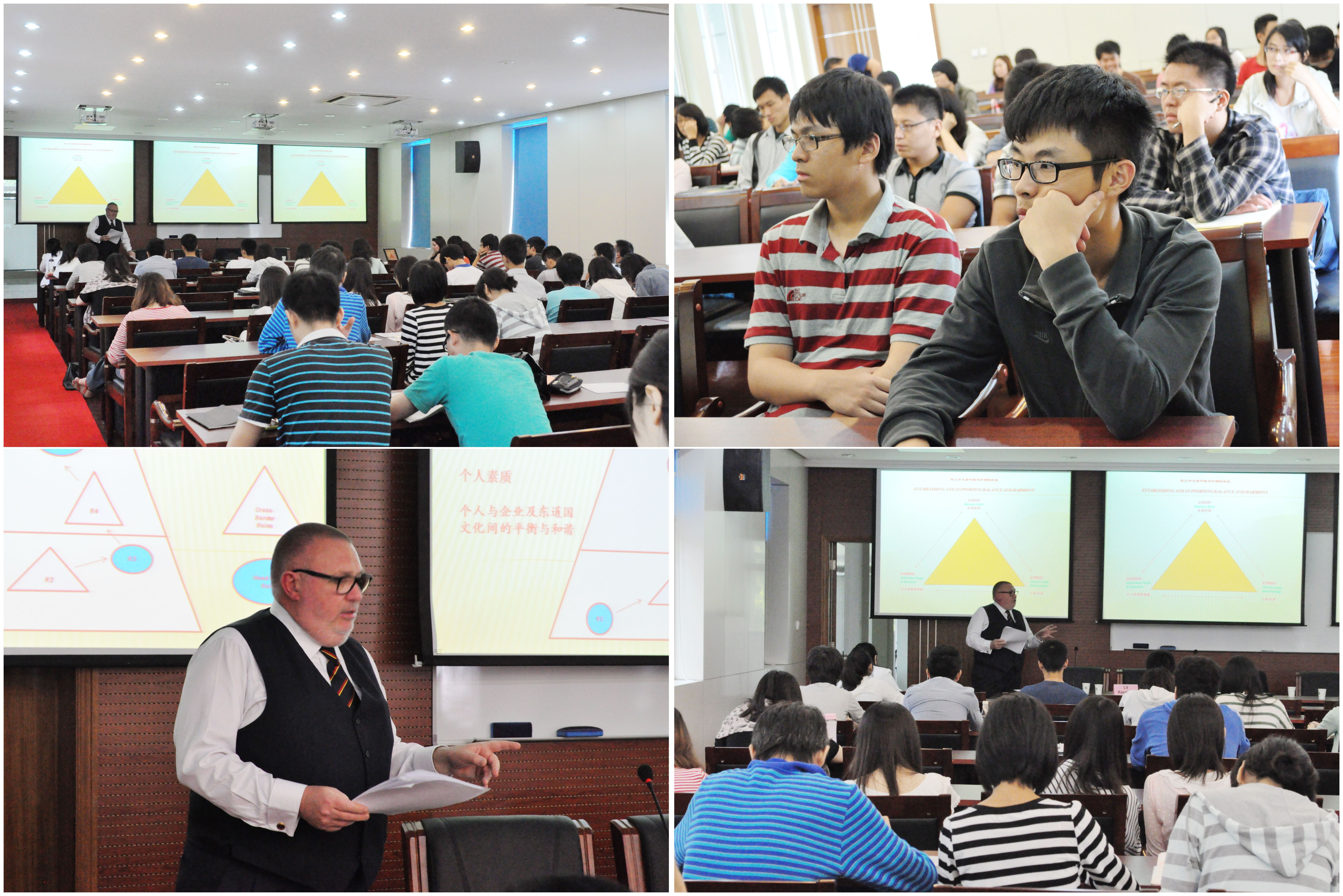 国际工商学院终身客座教授Alan James Fish接受我院邀请,于9月14日在文德楼做了题为 "SUCCEEDING BY A QUIET ATTITUDE -ENHANCING THE LEADERSHIP EFFECTIVENESS OF CROSS-BORDER MANAGERS THROUGH BALANCE AND HARMONY(宁静致远-建立支持平衡与和谐的关系)"的讲座。Alan Fish教授的研究领域涉及跨国经理人选拔、调整和职业管理,跨文化和战略人力资源管理等方向,并于2010年获得中澳高等教育"突出贡献奖"。 Alan Fish在讲座中深入浅出地对跨国管理环境下的经理人选拔、能力培养、跨文化适应和职业管理等四个层次进行了详细的阐述。他首先指出:跨国管理中的新变化对原有的平衡与和谐态势提出了挑战,这就需要更加关注跨国管理中出现的文化安全和心理冲撞问题。围绕跨国经理人的管理问题,Alan Fish教授剖析了个人能力及东道国文化特质对不同管理层次管理者策略影响,阐释了管理者类型、企业文化及个人文化的相互作用,并进一步结合社会文化、个人文化及连贯性人员配置三个方面对跨国经理人的能力要求、个人动机和激励措施提出了一系列的建议。 参加讲座的同学们来自工商管理、信息管理、会计等不同专业,他们围绕Alan Fish教授的讲座内容,提出了自己关心的问题。在问答环节,吕康娟副院长总结了讲座的核心内容,并就跨文化管理中文化冲突的问题与Alan Fish教授以及同学们进行了互动。学生们表示,讲座的内容与跨文化管理、管理与组织等课程较为相关,对他们深入理解课程内容,拓展知识视野起到了积极的推动作用。(科研部) |