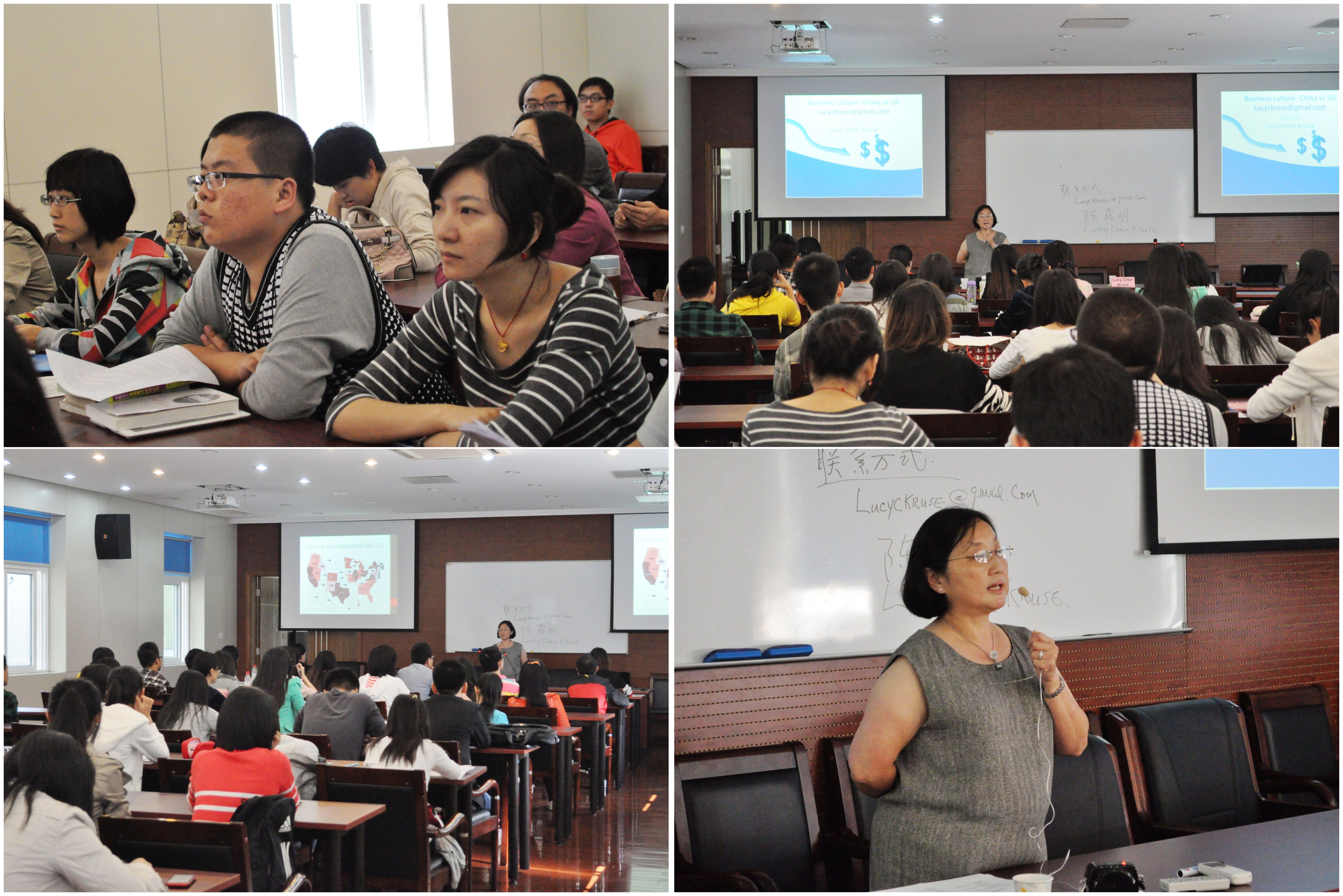 10月26日,Darrow Global Consulting 负责人Lucy Chen Kruse女士在我院开展了题为"中美金融业发展中沟通的作用及对行业的影响"的专题讲座,吕康娟副院长、学院教师、研究生及本科同学们聆听了讲座,报告厅内人头攒动、座无虚席。