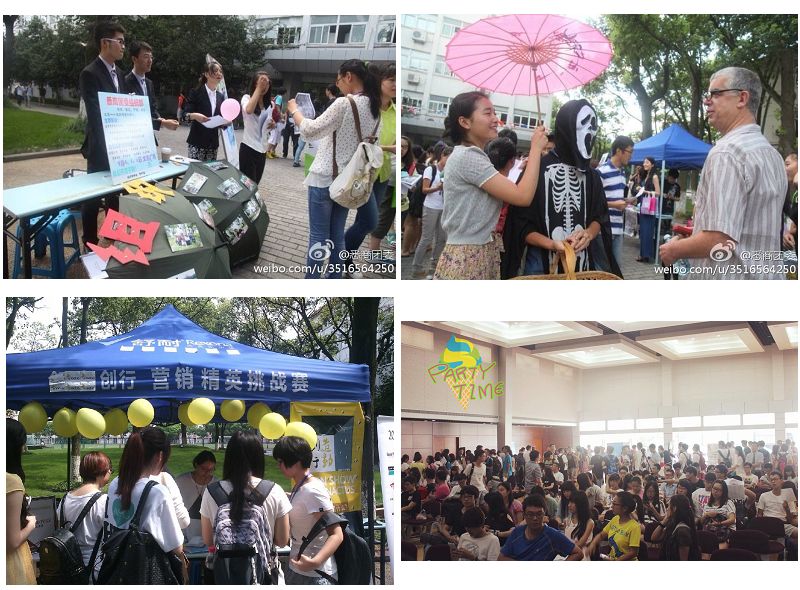9月4日、5日,团委学生会各部门在文荟广场设摊宣传,吸引众多新生前来咨询。各部门亮出自己特色,"假面巫师"、"篮球宝贝"、"火影忍者"纷纷出场,带来一场视觉盛宴。尽管第二天下雨,但各部门招新的热情丝毫没有减退,新生们冒雨前来,充满对团委和学生会的向往之情。招新活动得到了学院领导和老师们的关注和重视,外方副院长Matthew前来与各部门同学亲切交谈,Jason等可爱帅气的外教们也被现场的气氛所感染,来与大家合影。热闹非凡的宣传活动结束后,各部门对报名的同学们进行了一面和二面,精心挑选热情、自信的新干事。