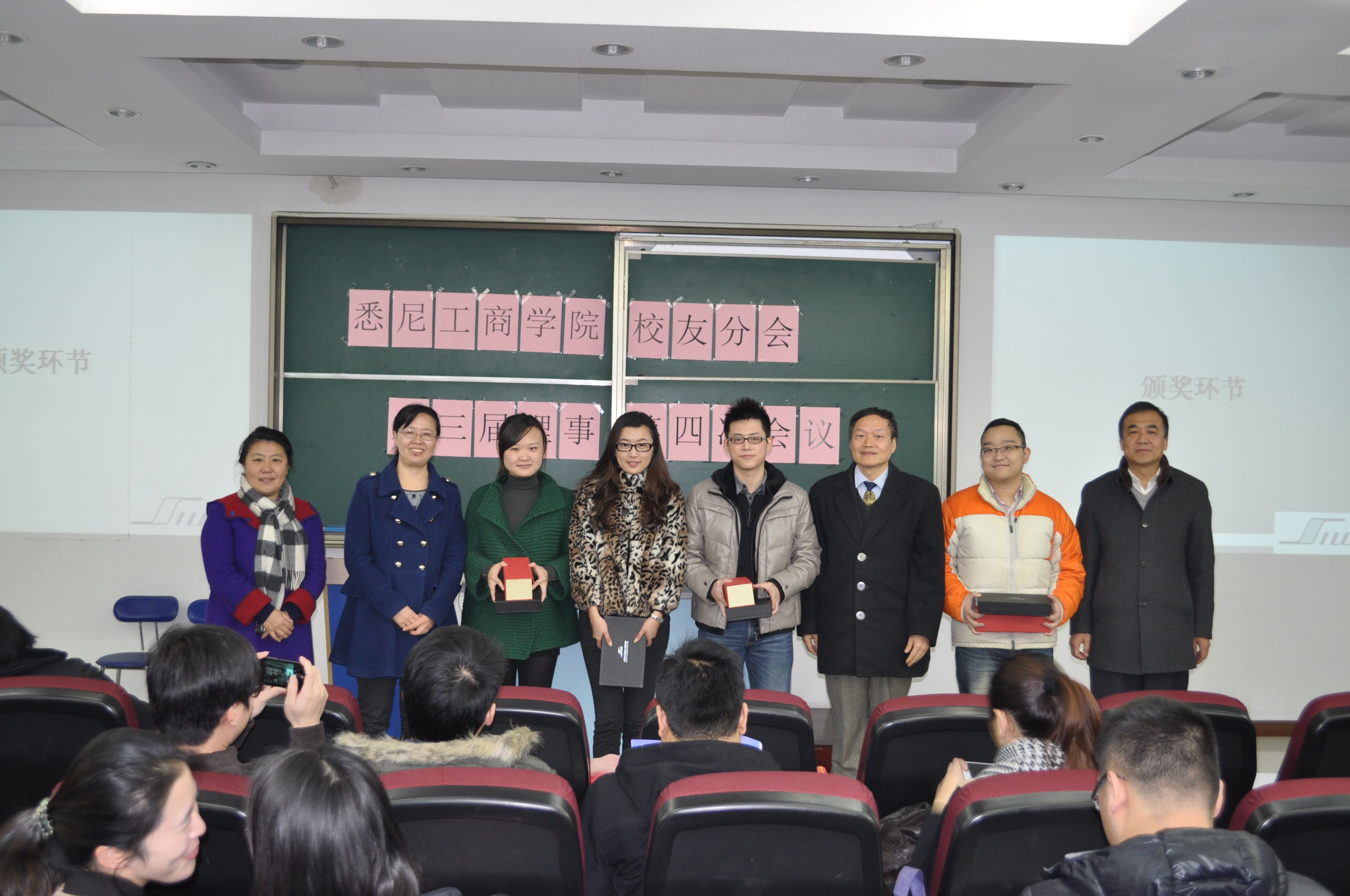 12月28日上午,英国365上市公司校友分会第三届理事第四次会议在嘉定校区文博楼底楼报告厅如期举行。学院书记李双、副院长吕康娟、副书记滕云、副院长马锦华、胡笑寒及由学院教师、毕业生等组成的校友理事会全体成员参加了此次会议。 活动当天天气寒冷,但严冬阻挡不了学院校友回归母校参与一年一度校友盛会的热情脚步。校友理事会秘书长、院办主任徐晓红老师首先向会议汇报了校友会在过去一年完成的主要工作。2013年学院校友会在各类特色活动、校友信息管理更新及各项创新活动等三个方面都取得了长足的进步,赢得到会校友的认可。接着,颁发了"2012-2013年度校友之星"的奖项,李双、吕康娟、滕云、马锦华、胡笑寒等学院领导上台向这个年度在校友工作中做出杰出贡献的优秀校友颁发了奖状。学院第一届毕业生夏莺校友代表全体校友会理事致词,她感谢学院为大家提供的宝贵的培养机会,号召全体校友用实际行动参与学院发展,回报学院的培养。她希望校友都积极投入到将于明年3月至6月隆重举行的学院20周年院庆系列活动中来。之后,分管学院研究生工作的马锦华副院长向在座校友通报了学院即将与合作方澳大利亚悉尼科技大学合作举办的硕士学位班项目,高端定位的项目设置引起校友们的广泛兴趣。吕康娟副院长代表学院领导向大会致辞。她从何为校友、校友会的功能、学院的发展思路和学院校友会的发展方向等四个方面侃侃而谈,提出校友会要起到搭平台建纽带的作用,关心毕业校友的全生命周期发展,通过更加专业化的运作,实现与校友的深度对接,切实实现校友与学院之间的良性互动。她的发言博得校友热烈掌声。
