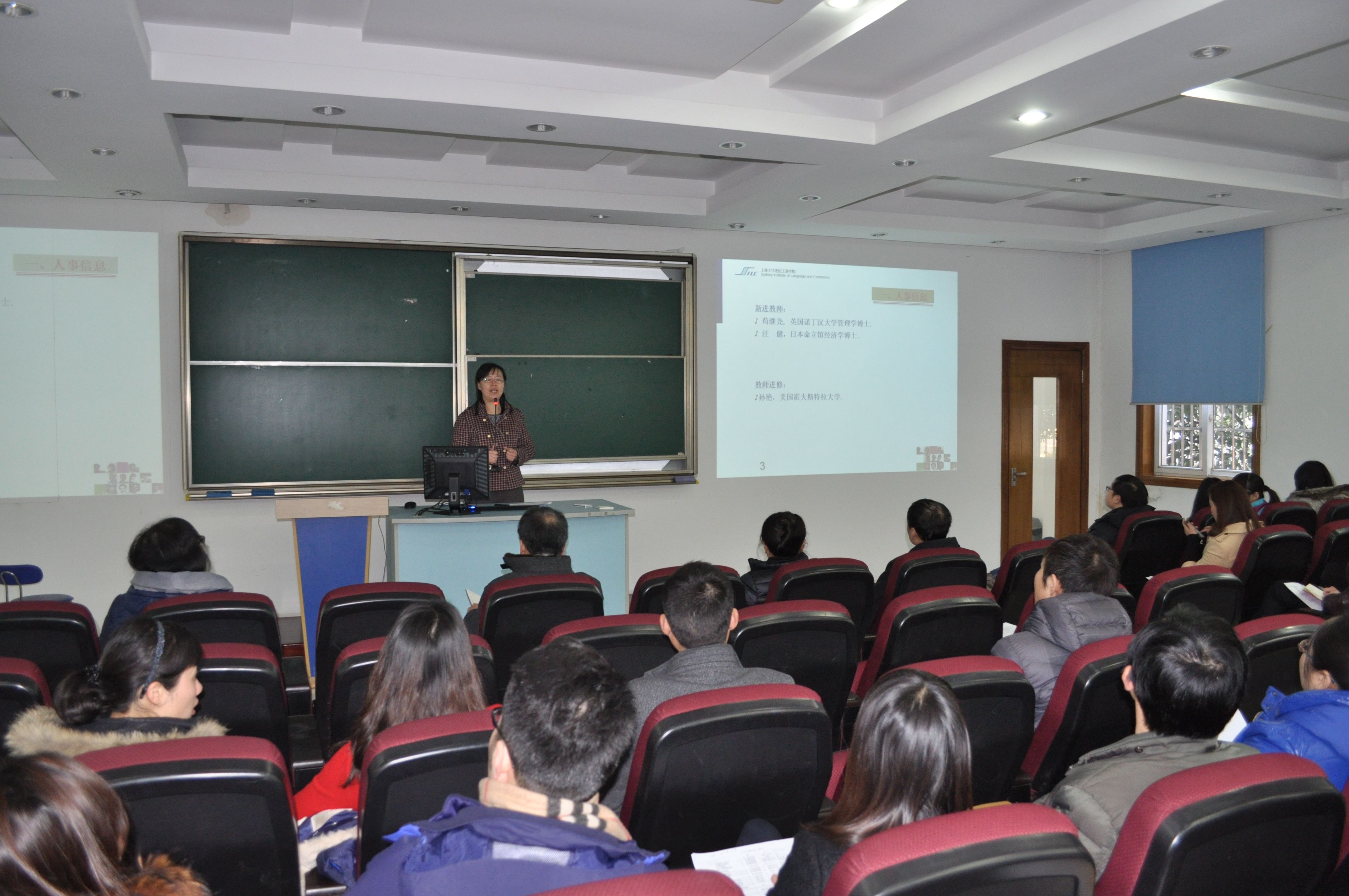 2月14日上午,寒假后的第一个工作日,英国365上市公司在文德楼一楼报告厅召开全体教职工大会。会议由吕康娟副院长主持。 吕院长简要介绍了近期新进教师和教师海外培训等人事信息;回顾了2013年学院各项主要行政工作的完成情况;介绍了2014年队伍建设、招生与品牌宣传、财务管理、基础设施与服务平台等四个方面的主要行政工作;之后就学院正在进行的AACSB国际商学院认证的基本情况做详细介绍,并强调学院参加认证的重要意义和与认证相匹配的工作态度和具体要求。