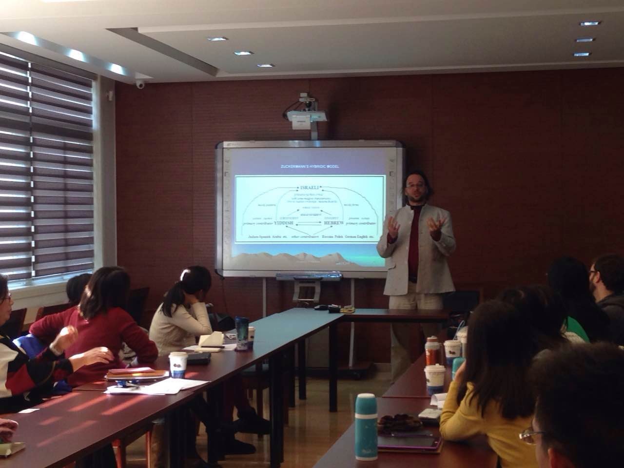12月5日上午,澳大利亚阿德莱德大学教授Ghil’ad Zuckermaan应学院澳研中心邀请来访。Ghil’ad教授是阿德莱德大学语言学和濒临语言研究中心主席、华东师范大学的访问教授。Professor Ghil’ad著作等身,其中最著名的是Israelit Safa Yafa(Israeli—A beautiful Language). 当天,Ghil’ad教授以"批判性思维"为主题,为我院英语教师和研究生做了一场精彩的讲座。讲座内容涉及语言、文化等多方面内容。Professor Ghil’ad的幽默和风趣深深地吸引了在场的全体师生。(澳研中心)