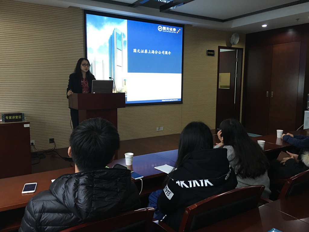 11月17日下午,学院首届1+3国际本科项目在第二学期开学首日开展创新性学习与实践课程,走出校园,深入浦东的金融硅谷,在国元证券公司上海分公司进行了对于证券与金融投资的初步了解。本次学术与实践课程分为两个阶段——前期专业调研&后期实践参观。