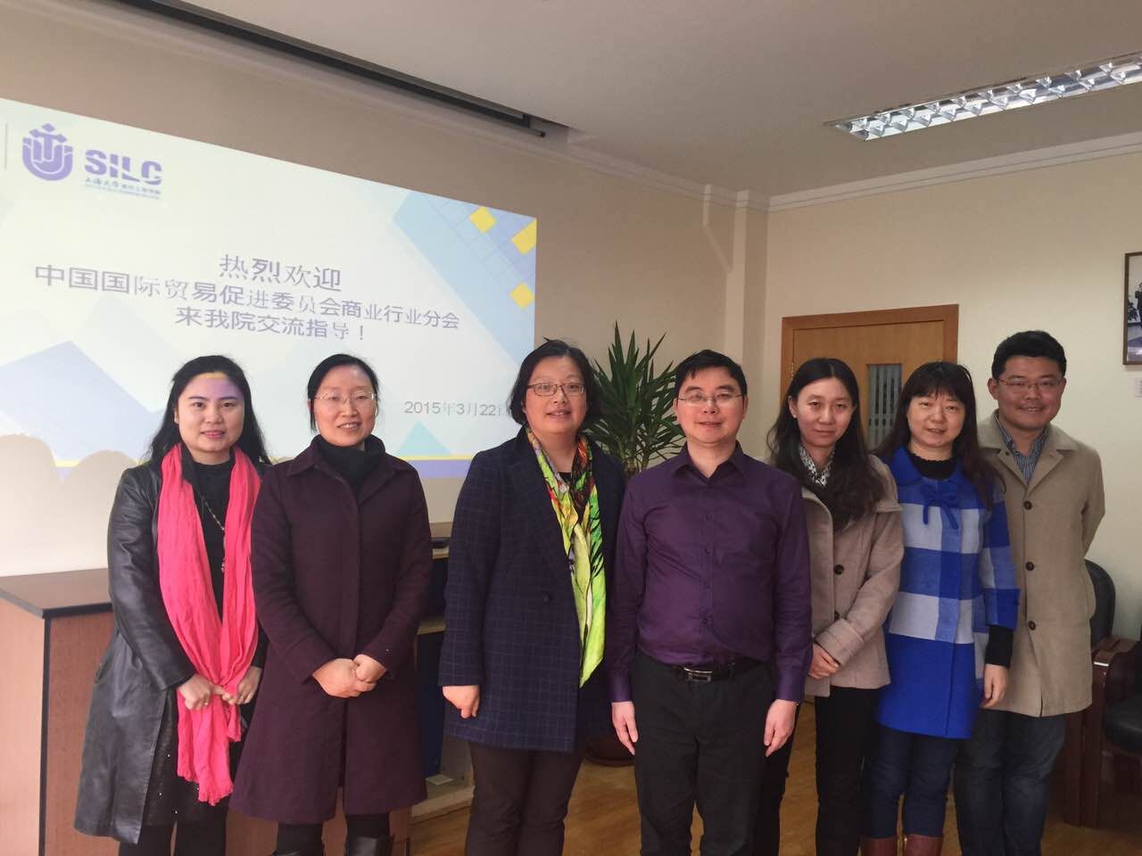 为更好的开展2016年度"上海高校商业精英挑战赛国际贸易专业竞赛" 3月22日上午,中国国际贸易促进委员会商业行业分会秘书长姚歆、行业部副部长李璟来访,在文荟楼409室召开见面交流会议,商讨四月底在我院举办大赛指导教师培训班等战略性合作相关事宜。出席本次会议的人员有学院副院长胡笑寒、党委副书记卫静芬以及此次大赛的指导老师贾利军、吴茂国、郑慧婧等。