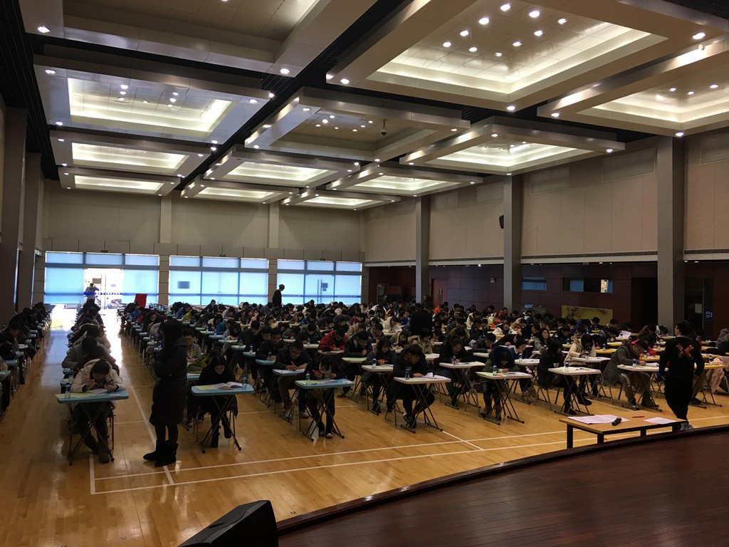 入学考试笔试部分于下午1点在嘉定校区行健文体中心举行。坐落于行健文体中心的国际化大考场,可容纳300人同时考试,并采用摄像头监控以确保考试的公平公正。而在家长等待学生考试的同时,招办老师就如何选择中外合作办学项目,甄别合法办学项目等进行了解读并回答了家长们关心的问题。