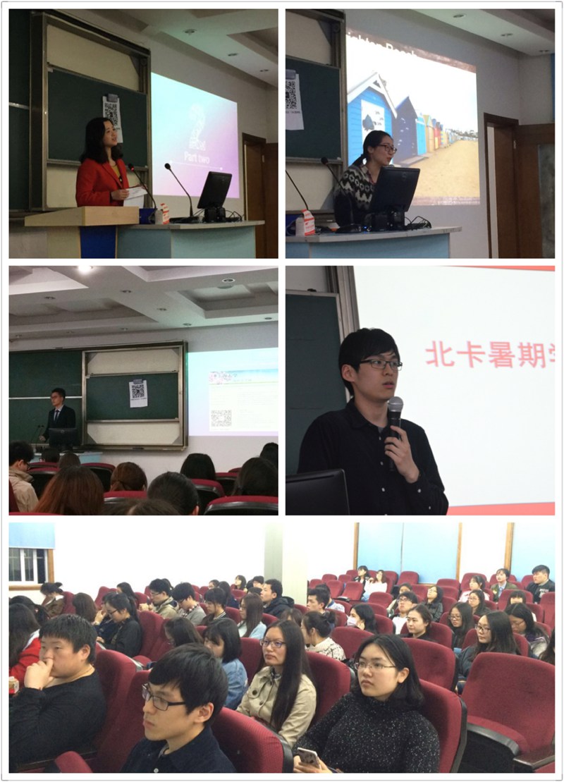4月7日晚,2016国际部海外交流推介与分享会在文德楼一楼报告厅顺利举行。交流经验分享的项目包括:UTS奖学金项目,芬兰瓦萨大学,英国班戈大学,UTS暑期学校、伦敦国王学院暑期学校以及北卡州立暑期学校。近百名学院学生参加了此次活动。