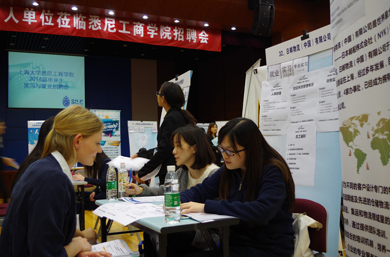英国365上市公司毕业生实习与就业招聘会无论在企业数量、规模和质量都具有良好的品牌效应。本次招聘会涉及岗位广、专业性强,国际化亦成为本次招聘会的一大亮点。本次招聘会中大陆汽车投资有限公司、美世咨询等知名企业的实习岗位向我院德国交流生全面开放。德国交流生经过HR的细心讲解,了解各个岗位的主要职责和专业要求,德国交流生在沟通中表现出对于在中国企业实习的兴奋和期待。此外,在参会单位中,包括舍弗勒集团等在内的多家公司也备受应聘者青睐,面试队伍较长,竞争异常激烈。