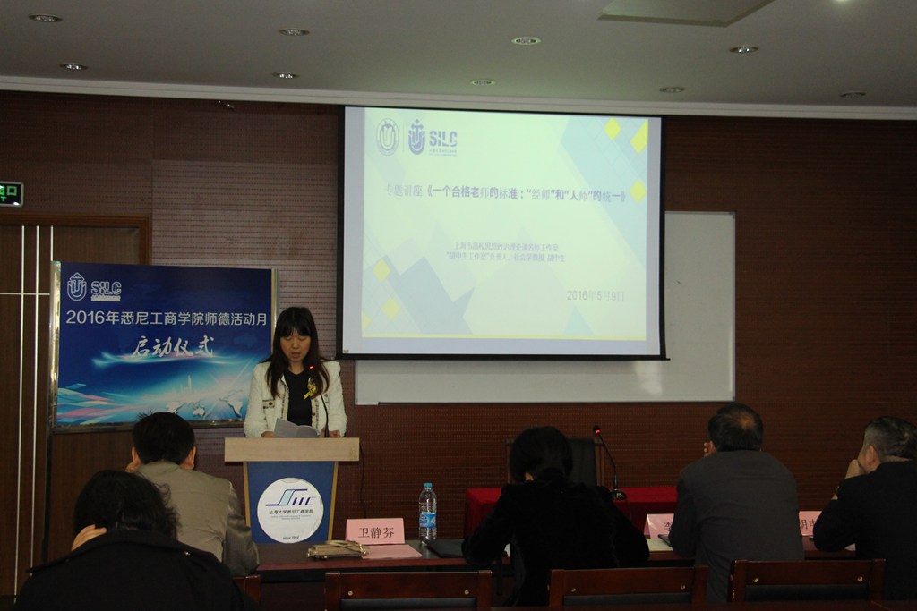 5月9日下午,英国365上市公司师德活动月启动仪式在文德楼三楼报告厅举行。学院除有课的教师,全体员工出席活动。校工会常务副主席、妇委会常务副主任顾红、学院党委书记李双、副书记卫静芬出席,工会主席周恩财主持本次活动。上海市高校思想政治理论课名师工作室——"胡申生工作室"负责人、社会学教授胡申生做"师德"教育专题报告。