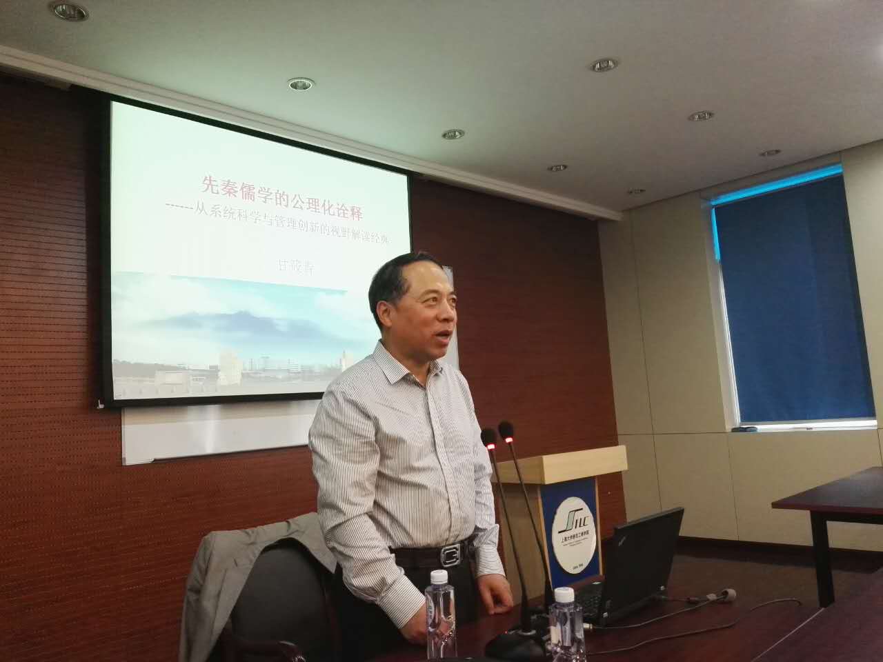 5月13日下午,江西九江学院院长甘筱青应邀在文德楼三楼报告厅举办了题为"先秦儒学的公理化诠释—从系统科学与管理创新的视野解读经典"的精彩学术讲座。悉商工商学院本科生以及研究生积极参与了本次学术讲座。