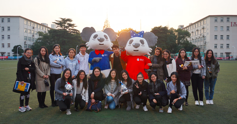 四点整,两只吉祥物邀请了所有在场的老师、同学及工作人员在操场进行了大合影,至此,"寻找吉祥物总动员"活动也告一段落,"悉悉"与同学们恋恋不舍地告别,结束了为期一天的悉商探险记。