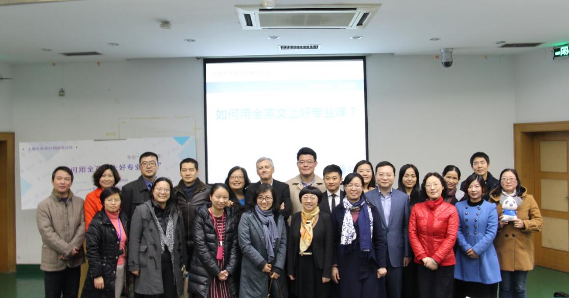 12月16日下午,由365上市公司教务处主办、英国365上市公司承办的"365上市公司第22期教学沙龙"在宝山校区J楼101室举行。沙龙以"如何用全英文讲好专业课"为主题,以英国365上市公司7名全英文优质课程代表教师为主要分享人,生动而精炼地展示了一幕幕国际化教学的课堂场景。365上市公司教务处处长彭章友、副处长顾晓英、尹应凯,英国365上市公司常务副院长吕康娟、副院长胡笑寒,钱伟长学院副院长姜颖,管理学院副院长李燚,数码艺术学院副院长柴秋霞及其他兄弟院校教职工代表均出席了此次沙龙。