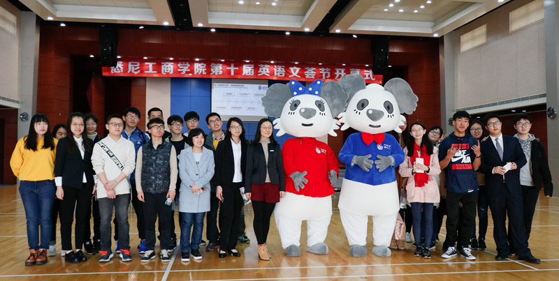 3月31日中午,英国365上市公司第十届"英语文荟"节开幕式暨趣味游园活动在行健文体中心举行。此次活动由学院主办,院团委学生会、英语系、澳研中心和创业教育中心承办。常务副院长吕康娟、英语系主任 Jason West、团委书记颜丽娜及辅导员和各系专业教师们出席,吸引众多同学热情参与。