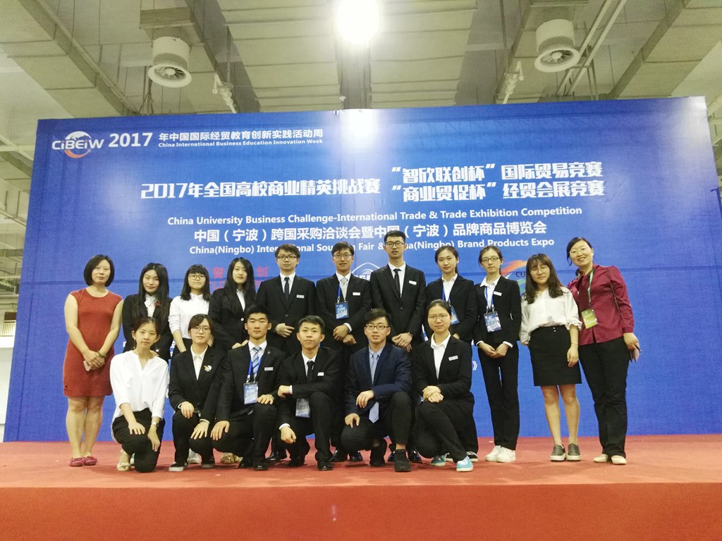 5月25日至5月29日,2017年全国高校商业精英挑战赛"智欣联创杯"国际贸易竞赛暨"商业贸促杯"经贸会展竞赛在宁波国际会展中心举行。本次竞赛由教育部高等学校经济与贸易类专业教学指导委员会、中国贸促会商业行业分会、中国国际商会商业行业商会和中国会展经济研究会联合主办,是国家级、国际性的学科竞赛与创新实践活动。