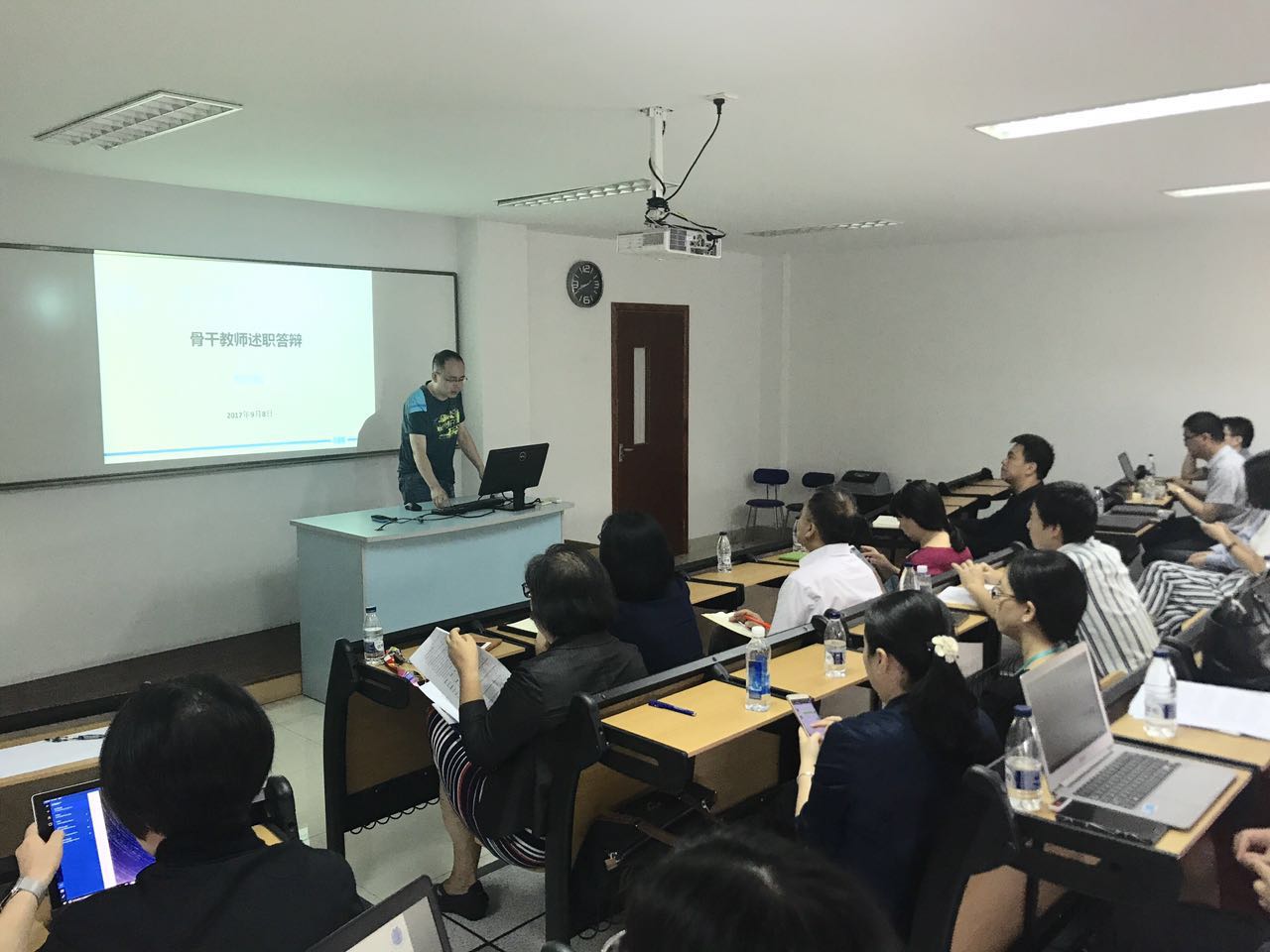 每位教师的述职均要求围绕以下四个方面展开:一、上一学年主要完成的教学工作,完成的科研及论文情况及特别希望呈现的具有特色和奉献的工作;二、对学科定位、科研方向定位和教学课程定位是否明确进行分析,并概述个人在学科团队中所发挥的作用;三、在师德师风、学术诚信等方面的表现,院系交办的各项任务的完成情况及参加院系组织各项活动的情况;四、个人存在的主要不足及改进措施以及对院系在青年教师培养工作方面的意见和建议。 参加当天述职的17位骨干教师依次上台,结合精心准备的PPT演示,或声情并茂、热情激越;或思路清晰、娓娓道来,在十分有限的时间里非常精彩地完成了个人述职。 吕康娟院长总结说,述职既是AACSB认证中对于师资考核的要求,也是展现骨干教师风采的机会。通过述职,可以增加教师间、学科间的相互了解,同时也能对学院其他老师起到引领和激励作用。希望教师们带着前进中的困惑积极思考,化压力为动力,保持良好的工作状态,时刻不忘教师的天职与使命,三年后,骨干教师队伍成为学院教师最优秀的代表,对全体教师起到标杆示范作用。 胡笑寒院长针对老师们述职中提到的教师授课量大、门数多、跨度大、不固定等问题和困惑做了回应;她希望教师们在进行科研活动时注重团队精神,多与院内、校内乃至国内、国际同行展开交流与合作;她鼓励教师们积极寻求国际访学机会,但提醒必须事先做好访学规划。 李双书记对述职中展现的骨干教师的总体实力和追求卓越的精神面貌予以高度肯定。他建议今后答辩会议多邀请新入职及广大青年教师旁听,多多搭建此类互相学习、互相借鉴、促进合作交流的学术平台,鼓励大家增进彼此了解,积极寻找合作科研的思路和契机,共同把学院科研、教学工作推向新的高度。(院办) |