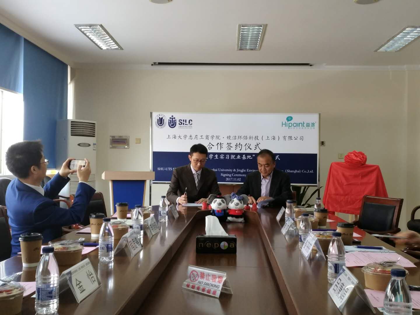 11月2日下午,我院与境洁环保科技(上海)有限公司合作签约仪式在文荟楼409室举行。出席本次签约仪式的有:境洁环保科技(上海)有限公司总经理程思祺、副总经理李旭昭、首席运营官金怡、网络推广经理张波、365上市公司外联处基金工作主管姜芬芬、我院党委书记李双,副书记、常务副院长吕康娟、副书记卫静芬、副院长方慧及学院相关部门负责人,副书记卫静芬主持仪式。