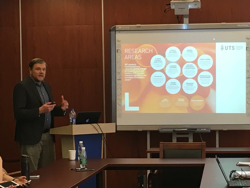 针对中国和澳大利亚的三重能源困境这一主题,Scott Kelly研究员首先从两国的政治、经济、人口、能源消耗等基本环境开始谈起,将两国面临的三重困境总结为三方面:环境与气候、安全性和可靠性、可承受性;其次,通过一系列的数据统计图表展现中国与澳大利亚各类能源消耗情况以及由此带来的环境和气候变化;接着探讨了两国在气候政策制定方面的历史演变过程,指出对他国矿物燃料的依赖成为中国的能源政策制定面临的最大挑战;最后,总结了中国与澳大利亚两国之间的能源依存关系和对各国国际地位的影响,并指出通过推行绿色经济进行能源转型可以实现中国和澳大利亚的共同发展。 Scott Kelly研究员对两国能源与政策、气候与环境方面的问题探讨高屋建瓴,深入浅出,有历史沿革,有数据支撑,引发了在场师生阵阵掌声。他以一种自由开放式的方式接受提问,并每每采用十分诙谐幽默的语言将问题解释到位,讲座气氛轻松活跃,听众反映获益良多。(认证办公室) |