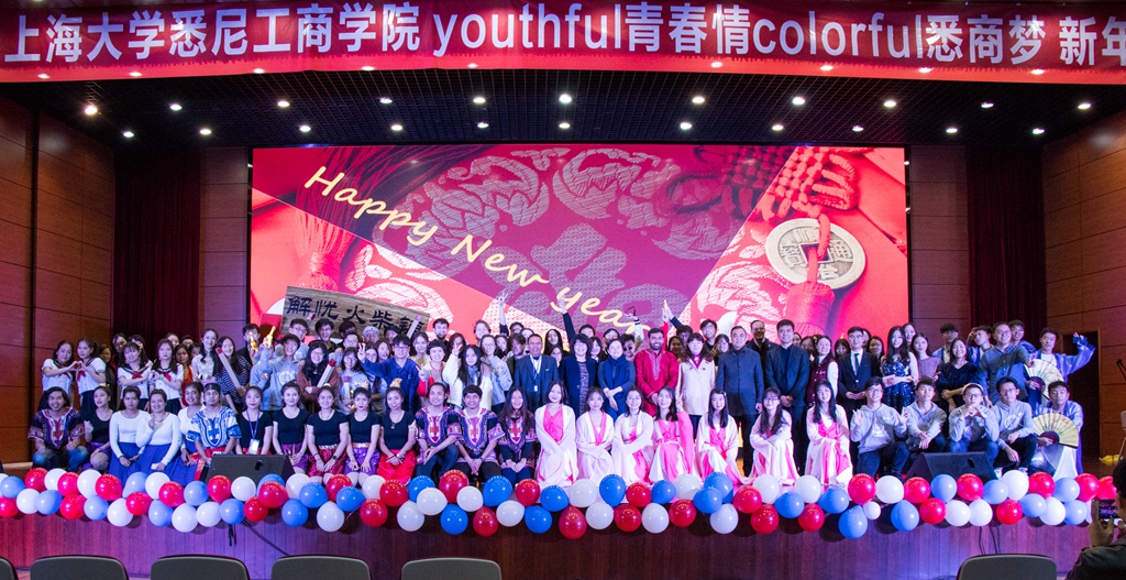 随后,新年晚会正式开始。此次新年晚会共分为三个板块。第一个板块是"皓——新星耀长空",由活力四射的部长舞、暖人心脾的大一合唱以及华丽时尚的T台走秀组成。此起彼伏的喝彩声回荡在整个会场中,热闹非凡。第二个板块是"靛——海阔任尔航",上大悉商可爱的外教和留学生们都带来了他们精心准备的表演,各显其能,各具风采,虽只有短短数十分钟,却带观众们游览了世界各地,领略各地风采。还有城中剧社带来的"年终大戏",也是惹得台下观众笑声连连。晚会第三个板块是"绛——清歌正激扬",街舞加宅舞的舞蹈串烧,铺开了一幅姿态万千、刚柔并济的美丽画卷。精妙绝伦的魔术表演,让一个个"奇迹"在舞台上绽放。由师生共同带来的柔美的惊鸿舞,让大家看到平日里辛勤耕耘的老师们的另一面。晚会最后,由本次晚会的幕后工作人员带来舞台剧"解忧火柴铺",之后伴随着《难忘今宵》的优美旋律,本次新年晚会圆满结束。