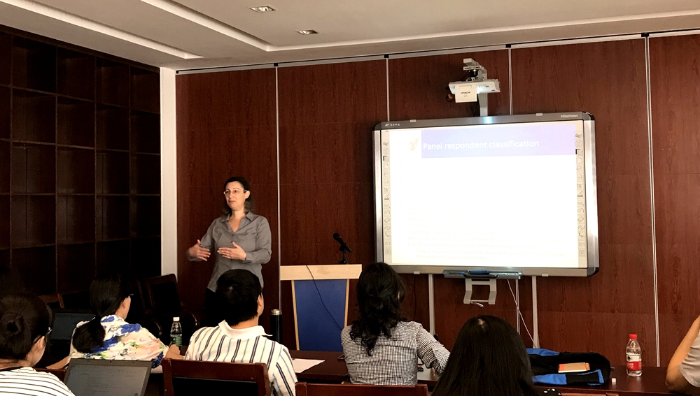 Lisa House教授讲座主题为"Data Quality in Online Surveys"。首先,Lisa House教授总结了在线调查的优缺点,指出尽管互联网的普及给问卷调查带来更多的机会,但在线调查数据质量的真实性、可靠性还存在很多问题。Lisa House教授传授了如何过滤掉无效在线问卷的技巧,包括如何设置陷阱题来判断受访者是否认真作答以及如何进行问卷一致性检验等。最后Lisa House教授以食品行业消费者支付意愿的在线调查为例生动地阐述了在线问卷设计与数据分析应注意的事项。 Lisa House教授对如何提高在线调查数据质量深入浅出的分析让在座师生收益颇丰。在随后的交流问答环节中,我院师生们纷纷结合自身经历和研究方向与教授进行较为深入的探讨,Lisa House教授严谨细致的回答再次让在场师生感受到调查问卷的独特的学术魅力。(认证办公室) |
