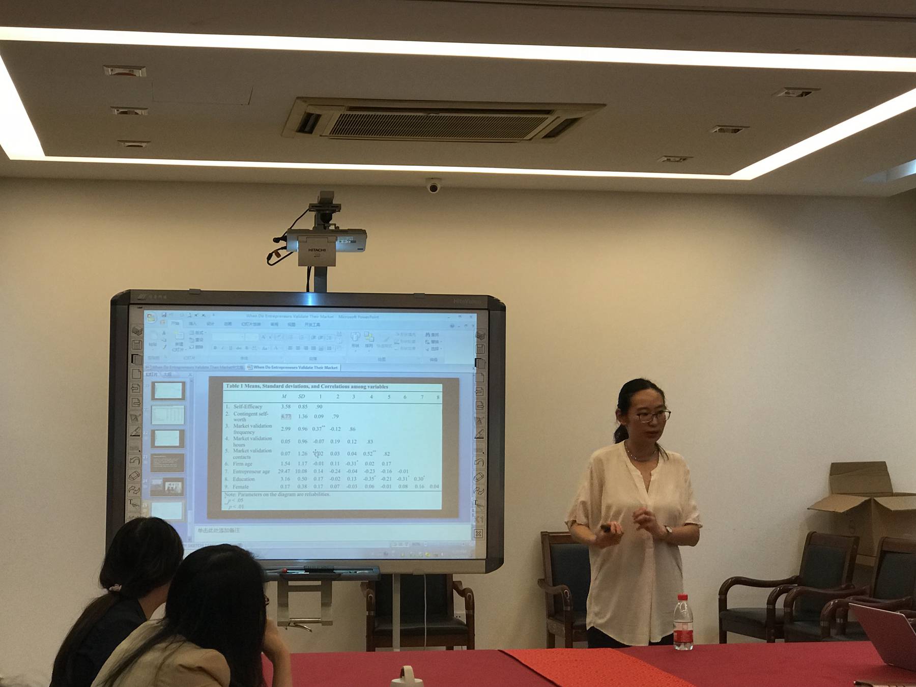 首先,陈曦博士谈到精益创业以及自我能效和自我价值感权变性的概念,并回顾创业企业如何验证商业模式的相关文献。她提出如下假设:驱动企业家进行市场验证存在着两种因素,在降低不确定性的动机下,企业家自我能效感适中时会趋向于进行市场检验,而在自我提升和自我保护的动机下,企业家自我能效很低或者很高时反而会进行市场检验。为了验证研究假设,她收集了智利和加拿大101位创业企业家的相关数据,分析结果确实表明企业家自我效能与市场验证频率之间呈倒U型关系。此外,还发现这种倒U型关系受到自我价值的调节作用,企业家的自我价值在一定程度上取决于创业过程是否成功。 讲座结束后,在座师生们就企业家是否需要标签化"创业者"形象、回归分析中如何控制创业者的行业差异等问题踊跃提问,陈曦博士一一解答,大家纷纷表示此次讲座收获颇丰。 |