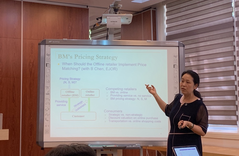 讲座开始前,孙老师对陈静教授做了一个简单的介绍。陈静是加拿大达尔豪西大学Rowe商学院运筹及供应链管理系教授,博士毕业于加拿大西安大略大学毅伟商学院。主要研究方向是渠道与供应链管理、运营与营销管理交叉研究、收益管理等,在国际主流期刊上发表论文40余篇,并在毅伟案例出版社发表多个案例。现任国际期刊International Transaction in Operation Research (ITOR)的副主编,并且兼任ITOR、AOR、IJPR的嘉宾主编。