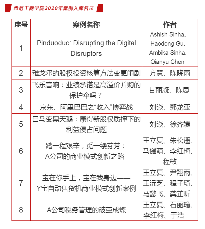 《中国工商管理国际案例库》项目由中欧国际工商学院案例中心承担建设。其定位于“聚焦中国问题,坚持国际标准”,面向全球征集优秀的中国工商管理教学案例,以推动国内外商学院对中国工商管理问题的教学与研究,鼓励以全球视野深入探索中国工商管理管理的实践。 2019年,《中国工商管理国际案例库》吸引了国内外85所高校和机构的467位作者投稿,共收到案例254篇,经过严格的筛选达到入库标准的案例共100多篇,我院则有8篇案例成功入库,具体案例名录如下(排名不分先后):