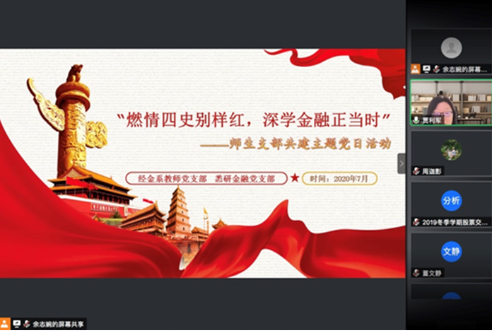 7月14日晚,悉研金融党支部联合经金系教师党支部以“燃情四史别样红,深学金融正当时”为主题,开展线上师生支部共建主题党日活动。吕康娟院长与18名师生党员相聚云端,展开对红色金融史和上海金融发展中心发展史的学习与探讨。本次党日活动主持人由经金系教师党支部书记贾利军老师担任。 首先,悉研金融党支部书记余志婉同志与组织委员张雅婷同志分别从四个阶段带领党员们回顾红色金融史:第一次国内革命战争时期、第二次国内革命战争时期、抗日战争时期和解放战争时期,拉开了党日活动的序幕。 接着,经金系教师党支部组织委员龚玉婷老师组织三位教师党员结合自身研究背景,围绕上海金融发展中心,从不同角度分享金融发展史。吴军老师分享了上海衍生品市场的发展演变和上海金融中心的蓬勃发展;侯克强老师系统回顾了上海成为金融中心的历史,说明上海金融中心的地位不是一蹴而就,经历了风雨波折;孙老师分析了上海国际金融中心建设面临的机遇和问题,提出金融科技需要适当的风险管理,金融监管需要技术化,才能促进上海使用金融科技作为发力点,成为更加全球化的金融中心。 随后,师生党员开启热烈的互动问答环节,共话上海金融发展中心的发展史。董文静同学想了解围绕强化全球资源配置、科技创新策源、高端产业引领、开放枢纽门户“四大功能”上海国际金融中心建设新的发力点,龚玉婷老师进行了详细解答,认同新的发力点与金融科技密切相关,例如区块链技术可以应用到非常多的领域。周迦影同学从制度经济学的角度提出“上海金融中心的兴起是否与上海历史上的公共租界有关”,侯克强老师得出高度相关的结论,认为外国商业银行的进入与租界的发展存在直接关系,对上海银行体系的发展产生很大影响。 活动尾声,吕康娟院长指出,此次党日活动选题新颖,实现四史学习和金融专业的高度融合,对于师生双方都是良好的学习机会。党员们从古代、现代、当下甚至未来等多个时间维度,梳理了中国和上海的金融发展历程。师生互动热烈,教学相长,为学生党员和教师党员搭建起了沟通的桥梁。 |