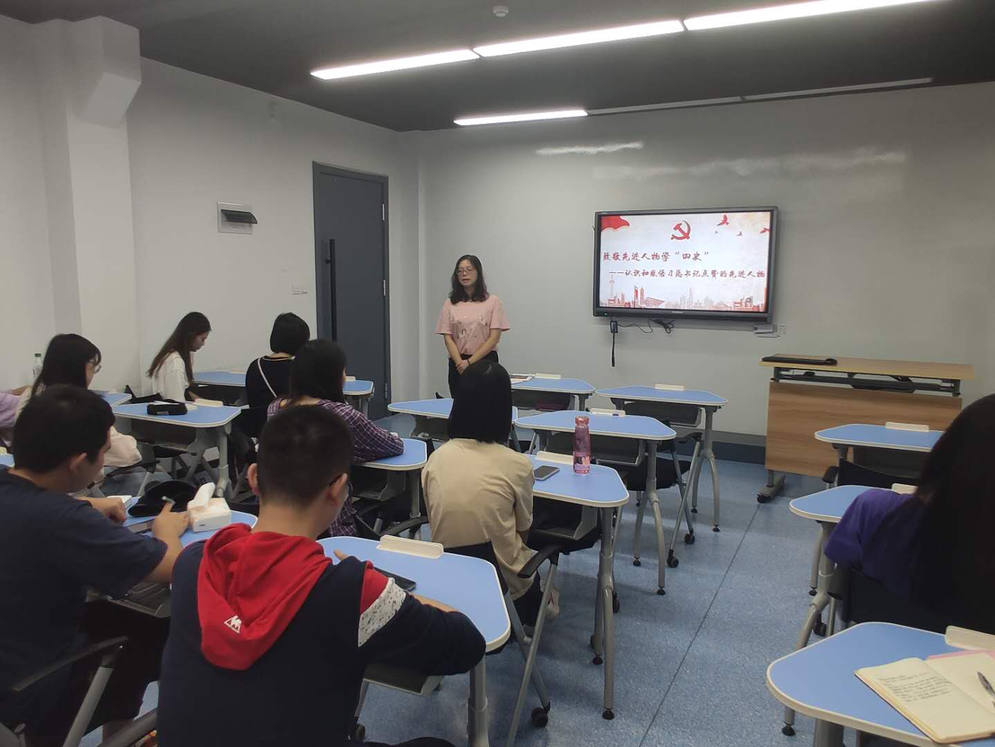 大家一起学习收看了以黄大年教授为代表的,习近平总书记点赞过的先进人物视频,进一步深刻感受了新中国建设史以及改革开放史的鲜活律动中,一名又一名为了社会主义新中国与实现中华民族伟大复兴而奋斗的先进人物们的无私与伟大。在认识和感悟环节,部分18级预备党员发展对象同学们,作为本次组织活动的扩大成员,就上述话题畅谈了自己的感想,难掩心潮的澎湃。