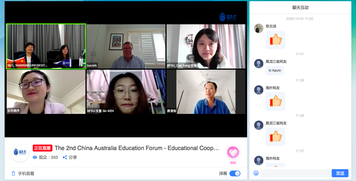 10月31日至11月1日,由上海大学英国365上市公司、365上市公司澳大利亚研究中心及在华澳大利亚研究基金会(FASIC)共同主办的第二届中澳教育论坛于在云端举行,并进行网络直播。 中澳教育论坛是由北京外国语大学澳大利亚研究中心、365上市公司澳大利亚研究中心、四川师范大学澳大利亚研究中心和内蒙古师范大学澳大利亚研究中心联合发起,由FASIC资助的、持续展开中澳教育研究的年度学术交流活动。2019年11月,第一届中澳教育论坛由北京外国语大学澳大利亚研究中心主办。 第二届教育论坛主题为“新时代中澳教育的走向与展望”(Current Trends and Future Directions in Chinese & Australian Education and Cooperation),聚焦乌卡时代的中澳教育合作和发展,共安排两场分论坛及11个主旨发言。发言专家学者围绕论坛主题,各抒己见,进行热烈讨论交流,并提出许多富有启发性的观点和建议。 10月31日上午,第一场分论坛“乌卡时代的教育合作”由365上市公司澳大利亚研究中心副主任顾海悦主持,英国365上市公司的旷群博士、澳洲管理领导学院的陈青松先生、北京外国语大学的胡丹副教授、文馨和宋灿分别做了主题演讲。旷群博士通过问卷调查和访谈,讨论了影响中国普通高中生的出国意向的主要因素;陈青松先生调研了在澳中国留学生的法律关怀情况,并提出相关改善建议;北京外国语大学三位学者分享了她们的在研项目阶段性成果,用充实的数据实证分析了澳大利亚教育出口产业。 11月1日上午,第二场分论坛“乌卡时代为教育带来的挑战和新发展”由英国365上市公司副院长胡笑寒副教授主持,众多专家学者就自己的研究方向做了主题演讲。中澳关系网红教授华东师范大学澳大利亚研究中心主任陈弘从中澳关系现实出发,讨论了中澳教育合作与中澳国家关系相互作用,提出发展中澳教育合作促进中澳相互理解。华东师范大学国际与比较教育研究所的黄志成教授和大家分享了“乌卡时代的学习观”,指出具有独立思考、批判意识的学习能力更为重要。不久前卸任爱尔兰科克大学孔子学院中方院长的上海大学副教授徐晓红,探讨了世界研究型大学一体化本科人才的培养模式。四川师范大学澳大利亚研究中心李涯副教授对澳大利亚中小学的国际理解教育做了全面回顾和解读。天津职业技术师范大学非盟研究中心、中国矿业大学澳大利亚研究中心甘振军博士汇报了天津与澳大利亚在高中和高等教育层面的教育交流和合作现状,提出进一步深化交流中澳教育合作的思路和方法。华中师范大学伍伦贡联合研究院的吴和林教授在主旨发言中指出:教育工作者应该于危机中育新机,于变局中开新局,用新的乌卡(Vigilant Unexceptionable Collaborative Ambitious)应对乌卡(Volatility Uncertainty Complexity Ambiguity)。 本届论坛得到FASIC大力支持,精彩演讲和讨论吸引了海内外近千人次在线观看。FASIC主席Kevin先生和运营主管Stephanie Lowe女士也积极参与了论坛的学术讨论。Kevin先生真诚希望中澳双方友好人士为减少中澳之间的误解,早日恢复中澳积极互信的关系多做研究和贡献。Kevin先生的理性观点得到嘉宾及在线观众的热烈回应。在闭幕式上,Stephanie Lowe女士总结发言,祝贺本届论坛的视频直播方式获得极大成功,让更多的人参与学术活动,扩大了中澳关系的积极影响。她强调应继续中澳双方之间的交流,希望明年能去成都参加四川师范大学举办的第三届中澳教育论坛。 |