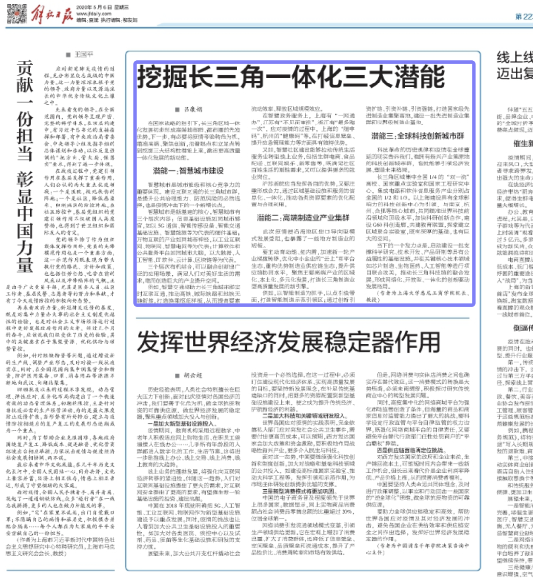 在国家战略的指引下,长三角区域一体化发展初步形成高端城市群、都市圈的先发优势。下一步,有必要将疫情考验转危为机,瞄准高端、聚焦创新,把着眼点和立足点转到挖掘三大结构性潜能上来,激活更高质量一体化发展的新动能。 潜能一:智慧城市建设 智慧城市是城市能级和核心竞争力的重要体现。建设互联互通的长三角城市群,是提升公共治理能力、防范风险的必然选择,也是疫情冲击下的一个新增长点。 智慧城市是新基建的核心。智慧城市有三个层次内容:信息基础设施如同城市感官,如以5G通信、智能传感设备、智能交通基础设施、智慧能源等为代表的硬件基础;万物互联的产业如同城市神经,以工业互联网、物联网、智慧电网等为代表;计算软件和公共服务平台如同城市大脑,以大数据、人工智能、IT软件、云计算、区块链等为代表。 三个层次有机结合,可以融合创新出广泛的应用场景,满足人们对美好生活的需求,继而创造巨大的产业提升空间。 例如,智慧交通将助力长三角城市群实时互联互通,推动高铁、城际铁路和地铁无缝衔接,打造换乘枢纽样板,从而提高要素流动效率、释放区域规模效应。 在智慧政务服务上,上海有“一网通办”,江苏有“不见面审批”,浙江有“最多跑一次”。应对疫情的过程中,上海的“随申码”、杭州的“健康码”等,在打破信息壁垒、提升应急管理能力等方面具有独特优势。 又如,智慧社区建设能够拉动传统生活服务业转型线上业务,包括生鲜电商、食品配送、互联网娱乐、新零售等,既满足社区百姓生活的刚性需求,又可以提供更多的就业岗位。 沪苏浙皖应当发挥各自的优势,又要注重形成合力,通过区域基础设施和服务的信息化、一体化,推动各类资源要素的优化配置与合理利用。 潜能二:高端制造业产业集群 此次疫情使沿海地区出口导向型模式发展受阻,也暴露了一些地方制造业的短板。 要主动育动能、拓内需,加速新一轮产业梯度转移,优化中小企业的“云上”和平台生态,重构优势制造业供应链生态,提升供应链协同水平,聚焦主要高端产业的区域化、本土化、多元化发展,打造长三角制造业更高质量发展的新引擎。 例如,以智能制造为抓手,以点引线带面,打造智能制造示范引领区;通过创新引资扩链、引资补链、引资强链,打造国家级先进制造业集聚高地,建设一批先进制造业集群和世界级制造业基地。 潜能三:全球科技创新城市群 科技革命的历史规律和疫情在全球蔓延的现实告诉我们,谁拥有新兴产业策源地的科技创新城市群,谁就能够引领经济发展、塑造未来格局。长三角区域集中全国1/4的“双一流”高校、国家重点实验室和国家工程研究中心,集成电路和软件信息服务产业分别占全国的1/2和1/3。以上海建设具有全球影响力的科技创新中心为引领,与南京、杭州、合肥等核心城市,共同瞄准世界科技前沿领域和顶级水平,加快科研创新合作,建设G60科创走廊,共建教育联盟,探索建立区域联合实验室,既有深厚的基础,也有巨大的空间。 当下的一个发力点是,启动建设一批支撑科学研究、技术开发、产品研制等具有公益属性的基础设施,并在关键核心技术领域如芯片制造、生物医药、人工智能等进行项目联合攻关,推动长三角科技链的融合发展,形成网络化、开放型、一体化的创新驱动发展格局。 |