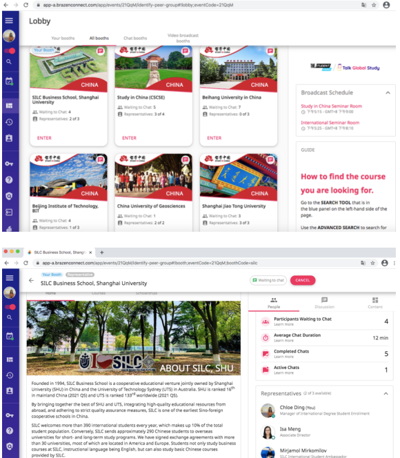 为进一步推广悉商国际学生项目、吸引更多优秀国际学生报考悉商,3月27日,我院应邀参加Talk Global Study ASIA 线上国际教育展。我院国际部国际学生招生负责人丁梦娇及悉商国际学生大使Mirjamol Mirkomilov代表悉商参与了此次线上展会,以期向海外学生宣传悉商的各类国际学生项目,增加我院国际学生来源多样性,提升学院的国际品牌辨识度与影响力。