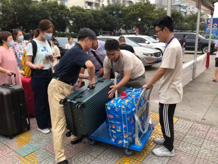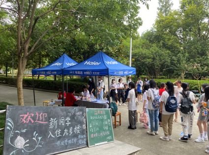 9月2日上午,志愿者们早早地就在塔城路门口、城中路门口做好了准备,小推车、口罩、搬运行李的大车……一切准备就绪,等待着大家的到来。8:30 左右,新生们告别父母,提着行李向校门口走来。志愿者们有的热情地帮他们往寝室托运行李,有的帮他们指引校园道路,有的就在校门口耐心地接受家长和新同学的咨询。看到学院老师和志愿者们的热情欢迎和帮助,本来为孩子担心不已的家长们露出了笑容。宿舍楼里,阿姨们将门口及大厅收拾得焕然一新,楼门口摆放着精美的欢迎板报,还贴心地总结了很多温馨小tips,帮助新生们更好地适应学校寝室生活。辛勤的志愿者们在各个楼里穿梭不停,帮助新生伙伴们搬运行李、找寝室、整理床位。在三十多度的高温下,他们汗流浃背的身影,是今天悉商校园里最美的风景。新生们办好入住以后,就可以去行健文体中心办理正式报到手续了。志愿者和辅导员们已等候多时,他们认真严谨地帮助同学们完成材料审核、办理注册、分发学生卡和大礼包等事宜,报到工作有条不紊地进行着。