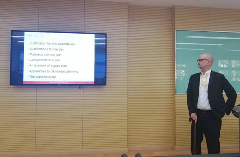 为帮助教师提高教案写作水平,Richard以教案设计(Lesson Planning) 为题开展了工作坊活动,从理论和实践出发,深入浅出介绍了教案的分类以及成功教案的标准。一个好的教案可以让教师更自信地控制教学节奏,更清楚地明确教学目标,英语系邀请了学院发展中心进行同步视频录制,供今后新入职教师使用。 作为学术英语的课程负责人,Anthony Levy 和Jason组织了关于学术英语写作教学的工作坊活动。他们针对在教学中发现的难点与重点,就写作的评分标准以及如何为学生提供有效的写作反馈对全体教师展开培训,确保对学生作品评价的合理性、公平性和一致性。英语角活动主管Tom Lake和自主学习中心(ILC)主管KannToker通过对上一学年活动的总结与反馈,精心安排了本学期的活动,教师们在现场依据自己的兴趣与专长选择了将参与指导的活动。 本次PD的点睛之笔是两场重量级的学术讲座。英语系特邀365上市公司外国语学院院长尚新教授和美国俄亥俄州立大学应用语言学系代理系主任陆小飞教授推出精彩讲座。两位教授的选题紧密结合英语系的中外教师合作教学模式和学术英语教学研究。尚教授的讲座“The Worldview Embodied in Classifiers of Mandarin Chinese”(化身量词的世界观),由学术总监RichardMadden先生担任主持人。尚教授回顾了语言人类学领域中语言和世界观的研究发展史,以各种翻译作为例子讲解了汉英量词反映的汉民族和英语世界的思维和文化差异。尚教授的讲座引起了热烈反响,与会中外教师从自身语言学习与教学经历讨论了语言差异对学生学习英语的影响。会说四种语言的外籍教师Yuliya在讲座后分享她的语言习得,提出尚教授的讲座有效地帮助外籍教师们理解中国学生普遍存在的一些英语语法错误,如单复数误用产生的根本原因,有助于大家形成跨文化意识,并从跨文化角度思考如何开展英语教学。 陆小飞教授的“Promoting Academic Genre Competence using Corpus-based Genre Analysis Activities”(利用基于语料库的体裁分析活动提高学术体裁能力)讲座由英语系系主任旷群博士主持,学院院长吕康娟教授介绍了主讲人陆小飞教授并对英语系与陆教授后期的学术联系与合作提出了期望。陆小飞教授是美国俄亥俄州立大学语言学博士,现任美国宾西法尼亚州立大学应用语言学教授,博士生导师。主要研究领域为语料库语言学、学术英语和二语写作等,担任中国学术英语教学研究会顾问,多种国际期刊编委会委员。陆教授在讲座中首先概述体裁能力的构念、修辞功能分析方法、使用自动工具从书面语料库中提取语言特征的方法、以及采用CGA活动教学的相关新兴研究。他详细阐述在学术写作课程中设计CGA活动的四个步骤。报告最后讨论在特定的教学环境中CGA活动的设计和实施注意事项,以及相关的研究潜能。参会教师都表示讲座很有深度,陆教授的研究是基于他在课程中的观察与实践,为英语系开展基于课堂的英语教学研究指明了方向。外教Kieth发表感言:Good choice on lecturer - articulate and helpful for encouraging research on student and teacher level; I will use some of his advice in the new course.