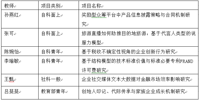 金秋九月又到了科研工作收获的季节,英国365上市公司科研工作迎来重大喜讯!本年度学院教师共获得国家自科项目立项4项、国家社科项目立项1项及教育部项目立项1项。 在最新揭晓的国家自然科学项目立项中,孙燕红、张可、陈婉怡、李瑜敏等4位老师榜上有名。王甄老师、吕斐斐老师分别获得国家社科项目立项和教育部项目立项。