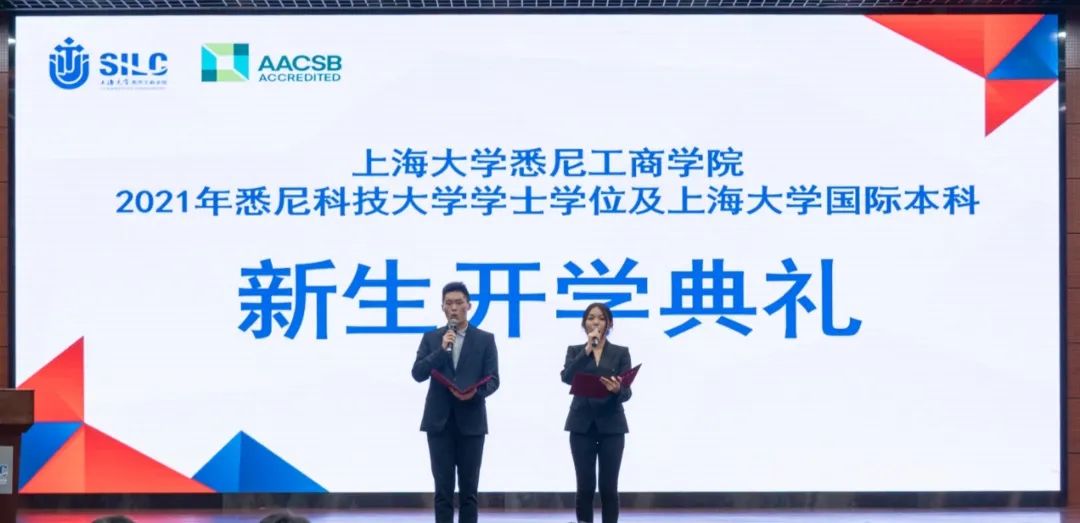 庄严的奏唱国歌仪式后,典礼正式开始。新生们满怀憧憬观看了学长学姐们为大家准备的开场视频。来自2019级悉尼科技大学学士学位的优秀学姐毕夏分享了她的SILC成长之旅,以自己一路升级打怪、不断成就自己的亲身经历鼓励大家跳出舒适圈,勇于尝试,在悉商收获属于自己的进步和成果。周易航同学代表全体新生发言,他十分感谢悉商给大家提供了一个广阔多元的发展平台,这里丰富有趣、不同寻常的大学学习生活正等待大家去探索和体验!