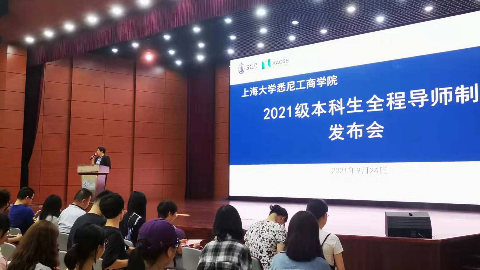 发布会由胡笑寒副院长主持,她回顾了一年来本科生全导师制在学院的推行情况,向大一新生们简单介绍了学院全导师制的特色,期待学生们能从全导师制里获取成长的有力支持。李双书记为即将开展的2021级本科生全程导师制致词,强调学院党委对全程导师制的高度重视,简要介绍了学院在本科生全程导师制的特色,呼吁广大新生主动积极地与导师们建立联系,用好用足宝贵的导师资源。李书记强调,今年的本科生全程导师制不仅覆盖所有计划内本科生,还一并将计划外的学生也纳入进来,真正做到悉商本科学子“人人有导师”。