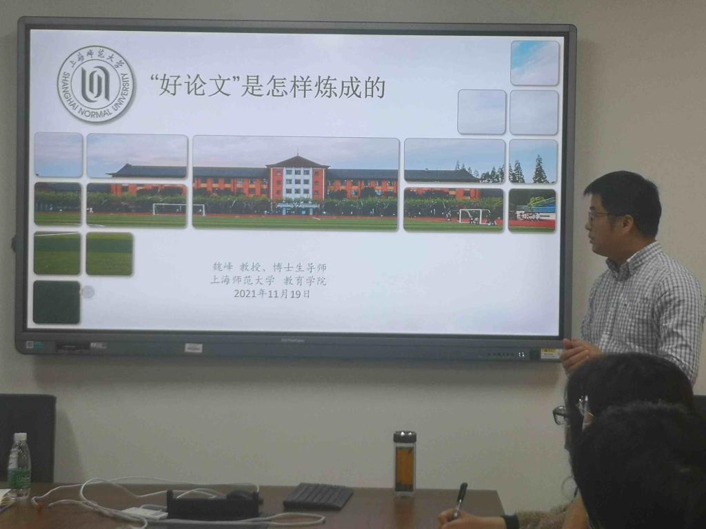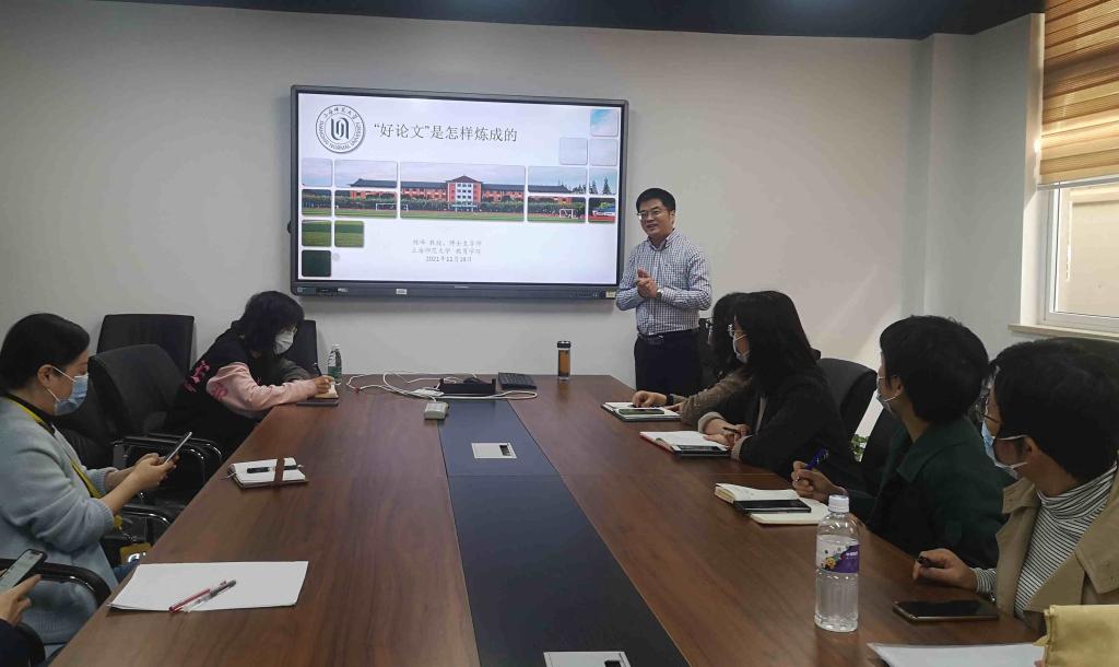 11月19日下午,上海师范大学魏峰教授应邀来院开设主题为“好论文是怎样炼成的”的学术讲座,讲座由卞亦文副院长主持。方慧副院长、卫静芬副书记及来自学工部、国际部、研究生部的行政老师和部分商科教师聆听讲座,并参与交流。