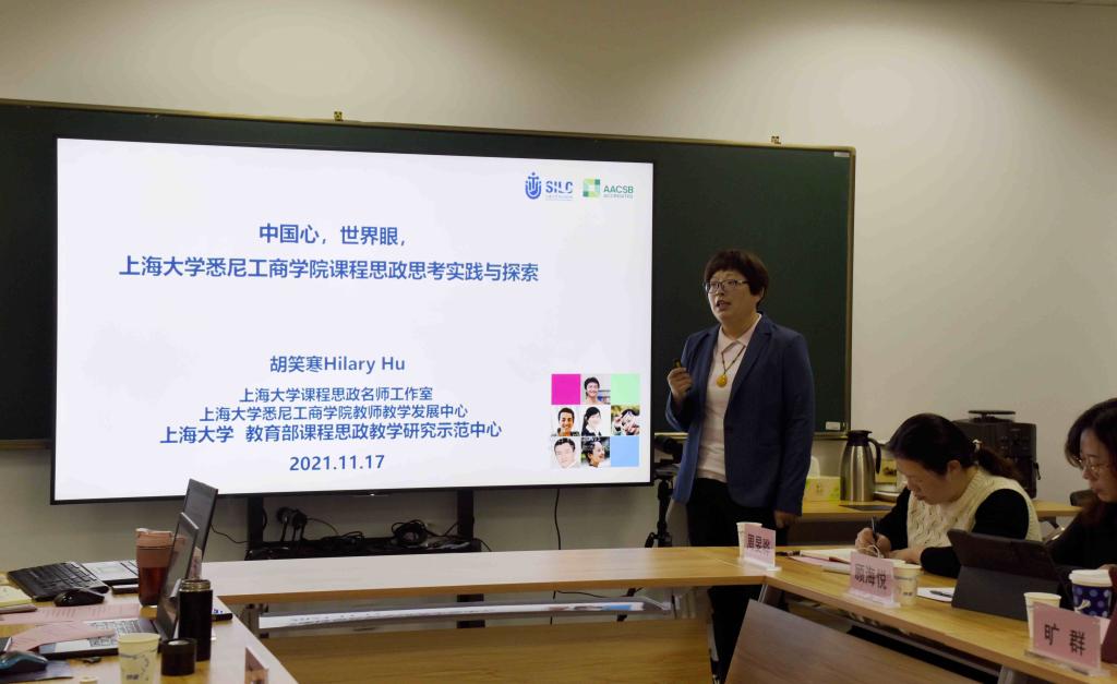 悉商教师团队首先进行了课程思政方面的案例分享。胡笑寒副院长从整个学院的角度介绍了我院在课程思政建设方面的规划与探索,通过“共享学校优质思政课程资源”、“思政主干课程”、“学院自建课程思政特色”等三个方面的课程形成“三维一体”的合作办学思政教育体系。工管系主任聂晶老师以跨文化管理课程为例,介绍了自己进行课程思政建设探索的心路历程。旷群老师作为学院英语系的中方主任,管理着整个学院的外语课程,她从英语课程为中外合作办学机构全课程学习的基础出发,分享了在中外合作办学背景下外语课程进行课程思政建设的必要性,以现有外语课程的特色为基石,从教学理念、教学设计、教学内容、教学评价四个方面分析了开展课程思政存在的挑战,并介绍了SILC在这方面所做的各种实践,文化双向交流是根本,提高中外教师对课程思政的认识,共同参与,积极开展课程改革,用创新解决难题。财会系主任甘立凝老师以财务管理课程为例,从职业道德、制度自信、教学内容创新等三个角度介绍了课程思政的教学实践情况。 爱恩学院丁其磊老师作为教师代表以管理学基础课程为例分享了学院在课程思政工作方面的实效与反思。王娜院长介绍了爱恩学院整体的课程思政建设工作开展的情况。